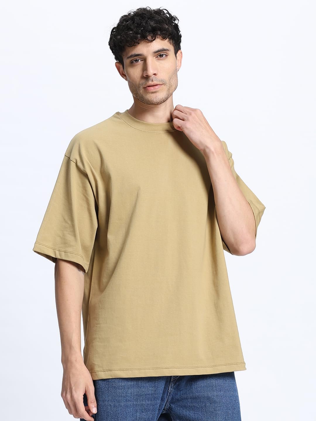 100% Cotton Oversized T-Shirt for Men | Drop Shoulder Round Neck Solid Oversized T-Shirt