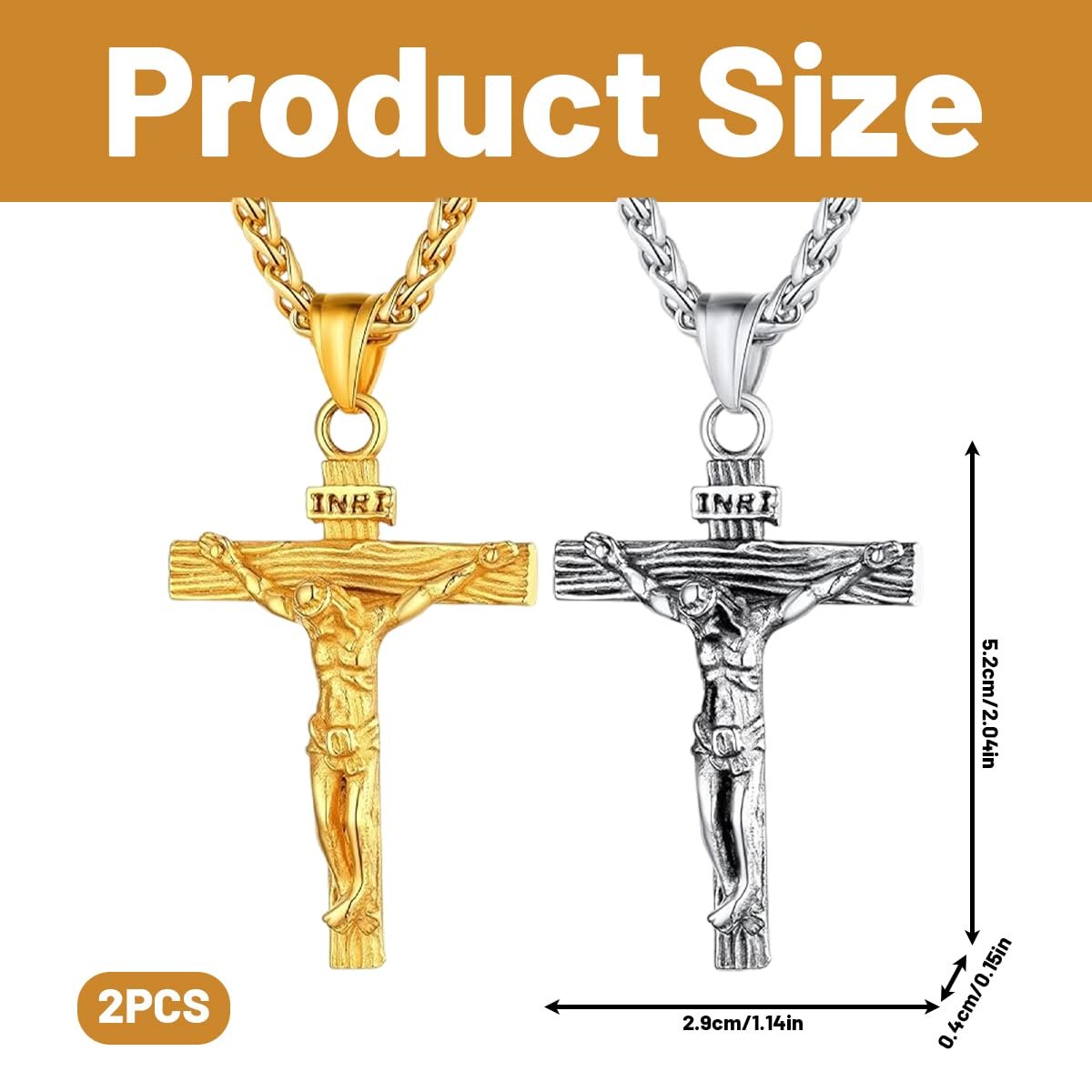 2PCS Cross Necklace, Necklace for Men and Women, Stainless Steel Chain with Cross Pendant, Stylish Accessories for Men, Unisex Charm Necklace, Gold and Silver Alloy