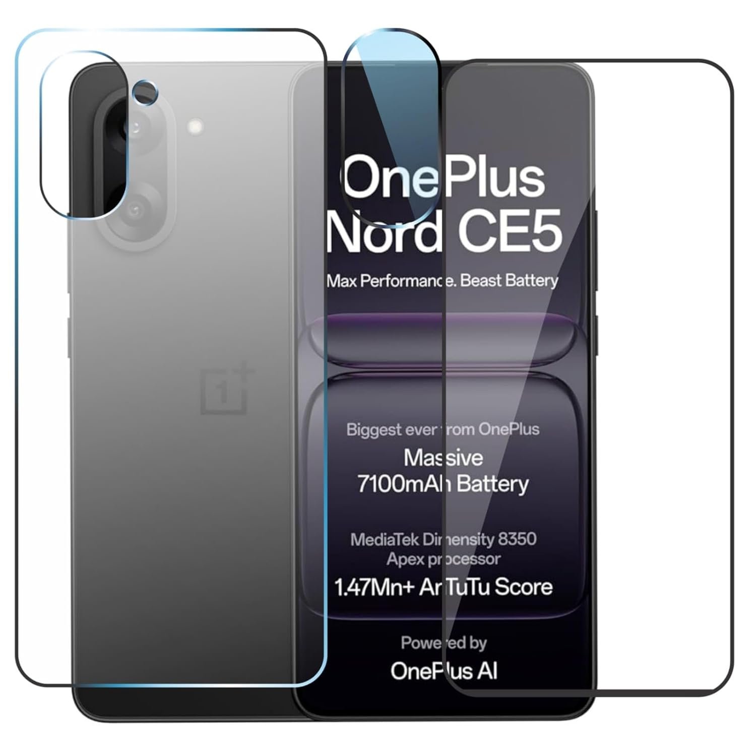 (3 in 1 combo) Best Tempered Glass Protector compatible for Oneplus nord ce5 5G with Back 3 layer membrane with Camera Lens Protector [Back guard+ superX tempered+ camera lens]