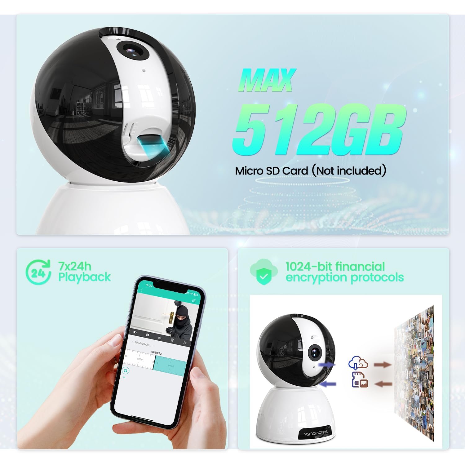 VSmahome surveillance camera requires no installation, is easy to use, plug and play