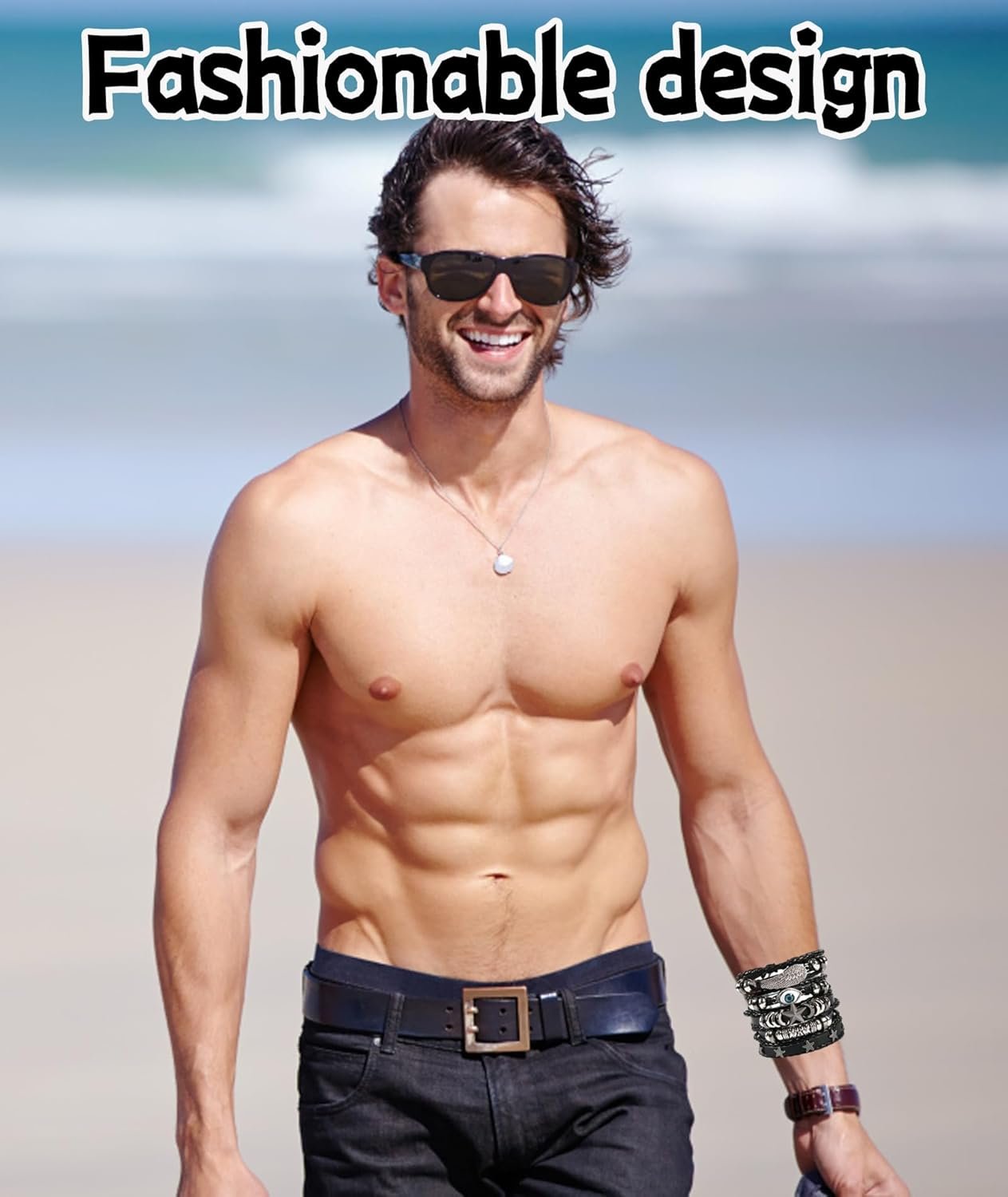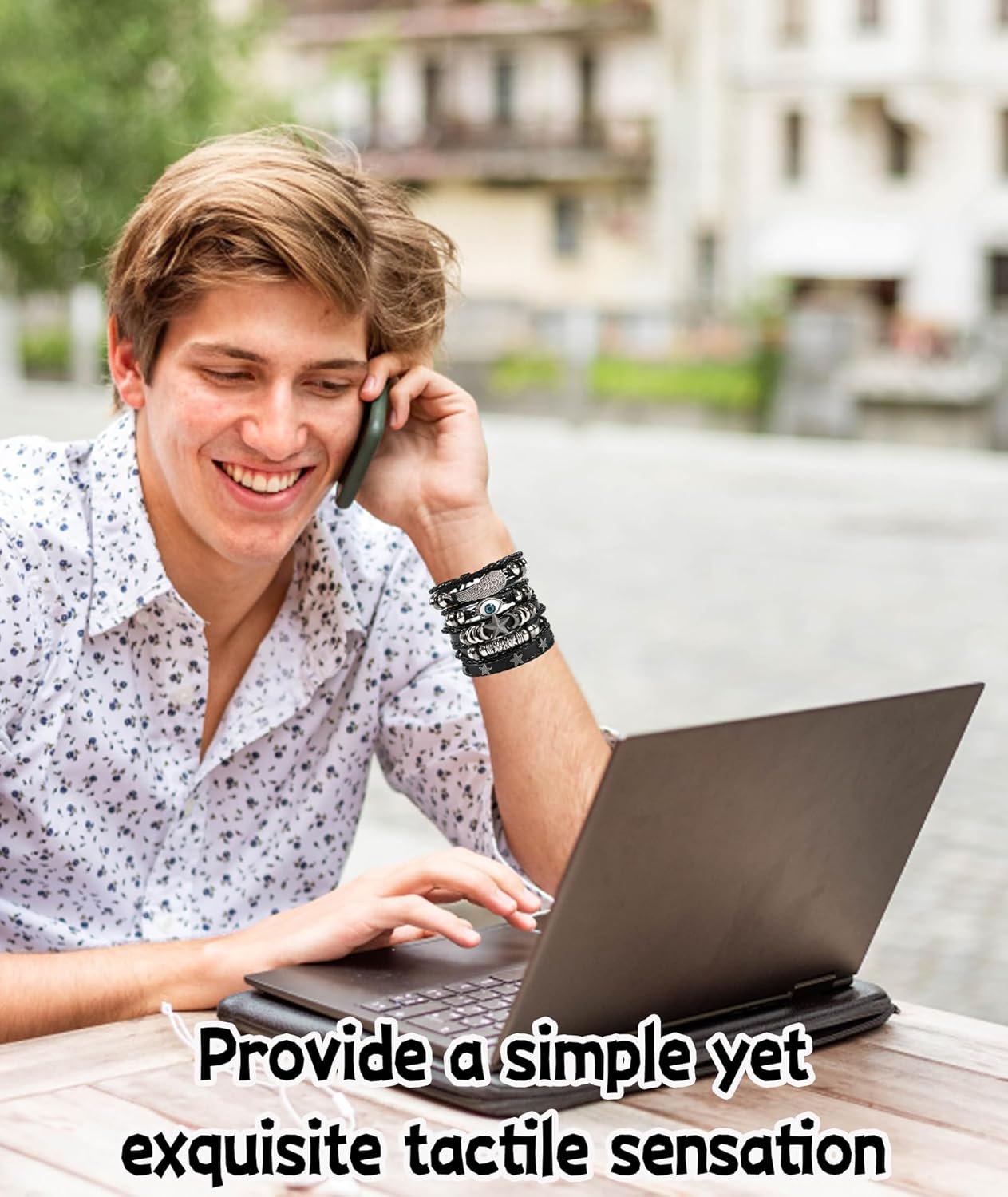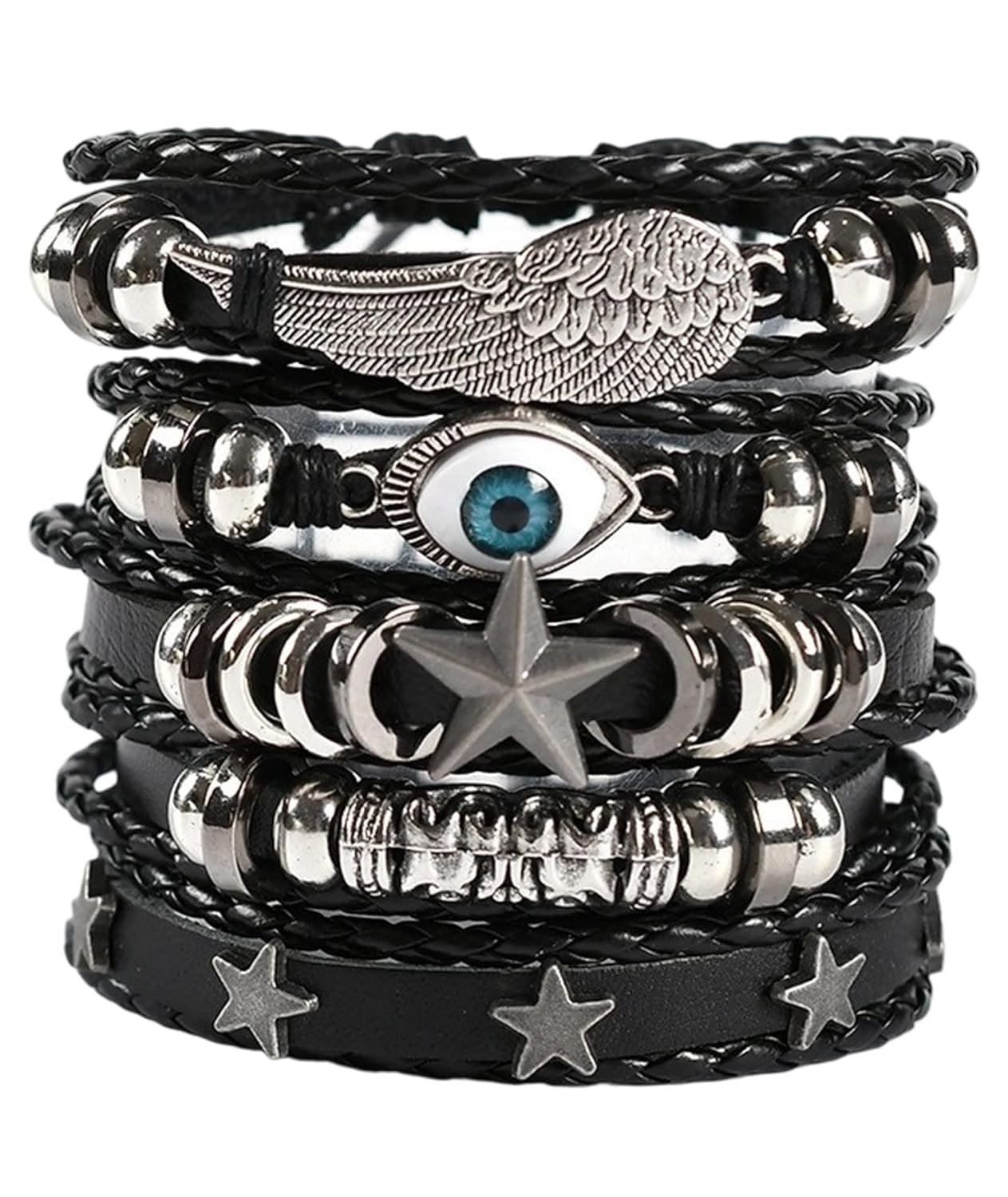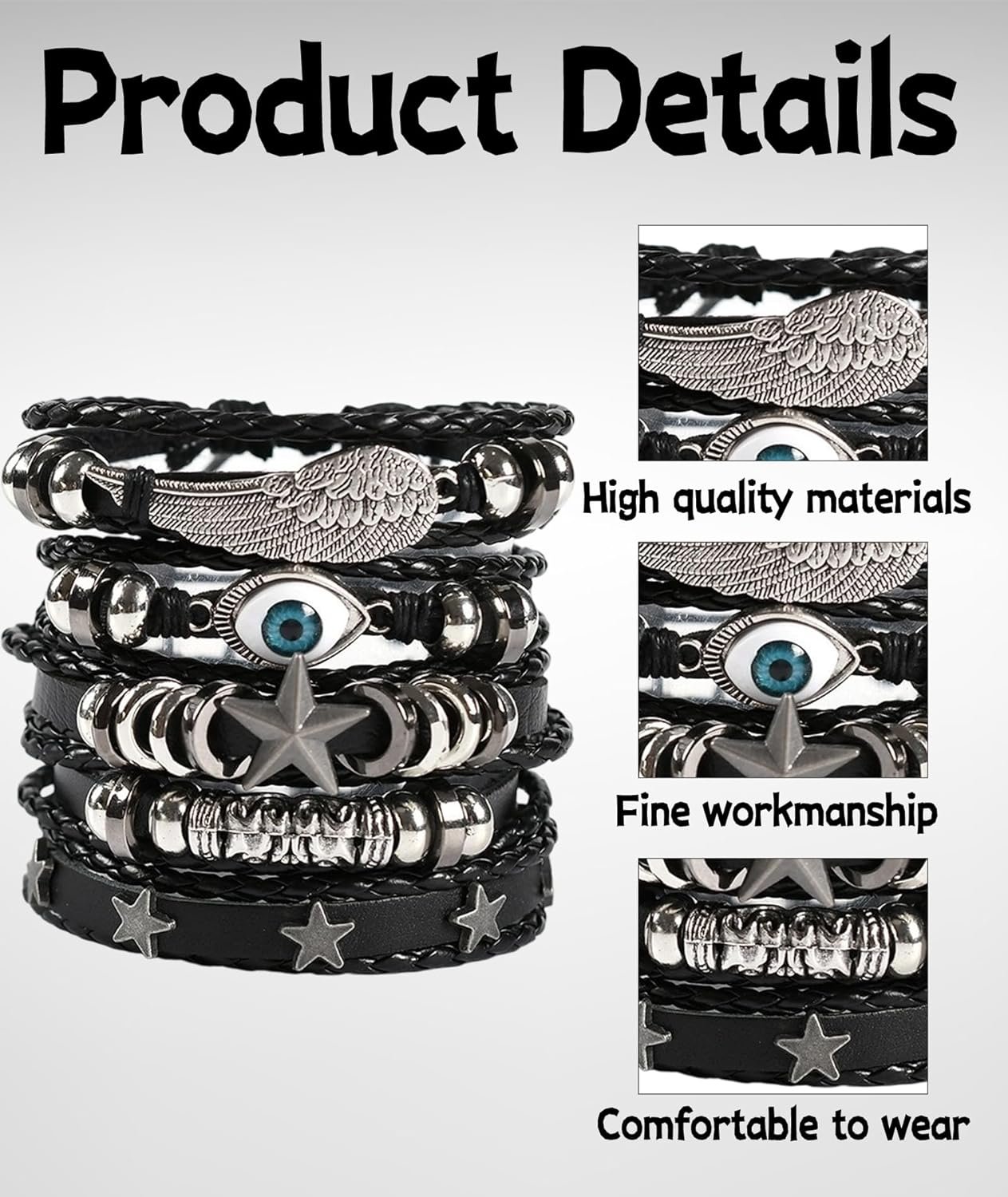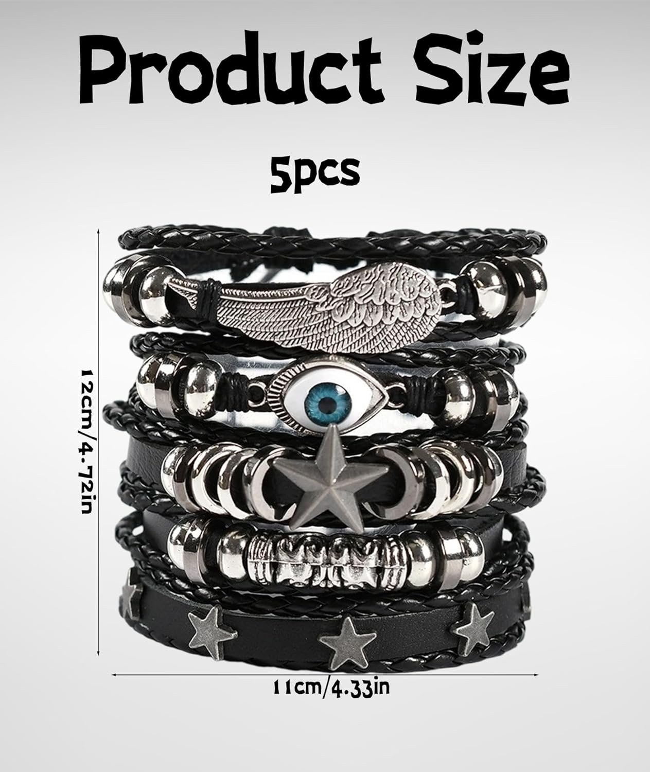 5 PCS Leather Bracelet, Punk Bracelet, Handmade Wrist Bands for Men, Heavy Leather Bracelet for Everyday Wear, Adjustable Hand Bands for Casual or Formal Outfits