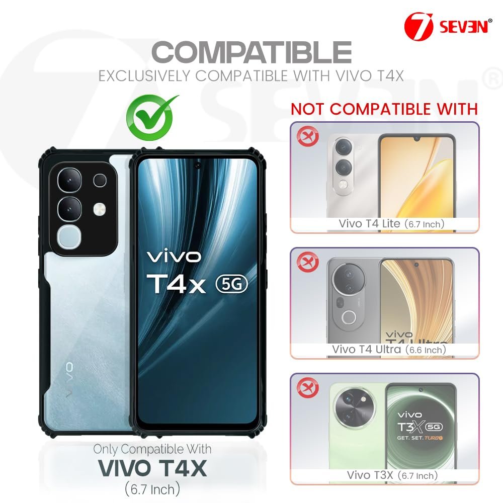 7SEVEN® Ipacky Back Cover for Vivo T4X 5G Mobile Back Case Shock Proof Design Camera Edges Protection Crystal Clear Phone Case Precise Cutouts Matte Black Soft Bumper Phone Cover