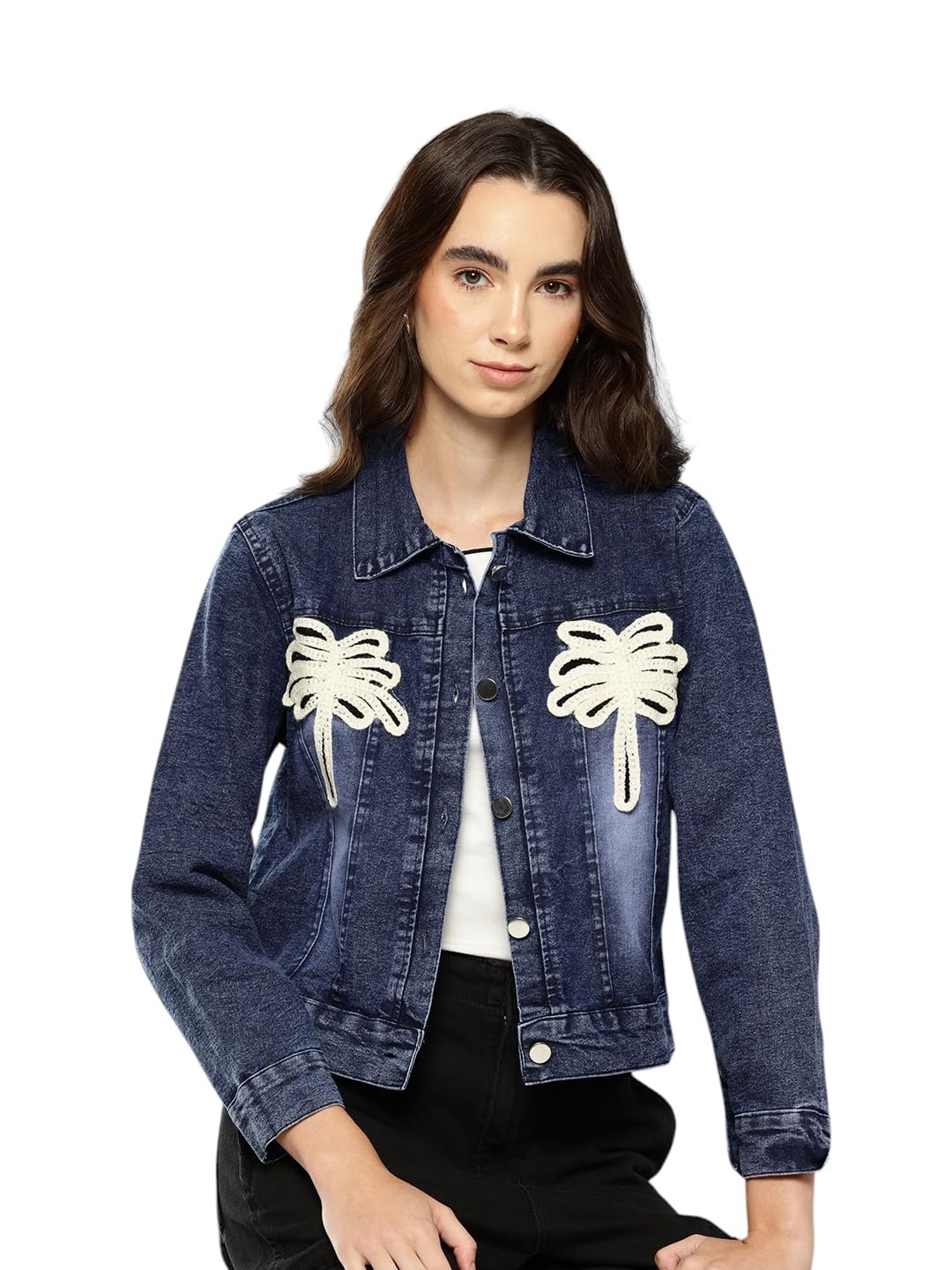 Aarika Womens Casual Wear Black Colour Embroidery Denim Jacket