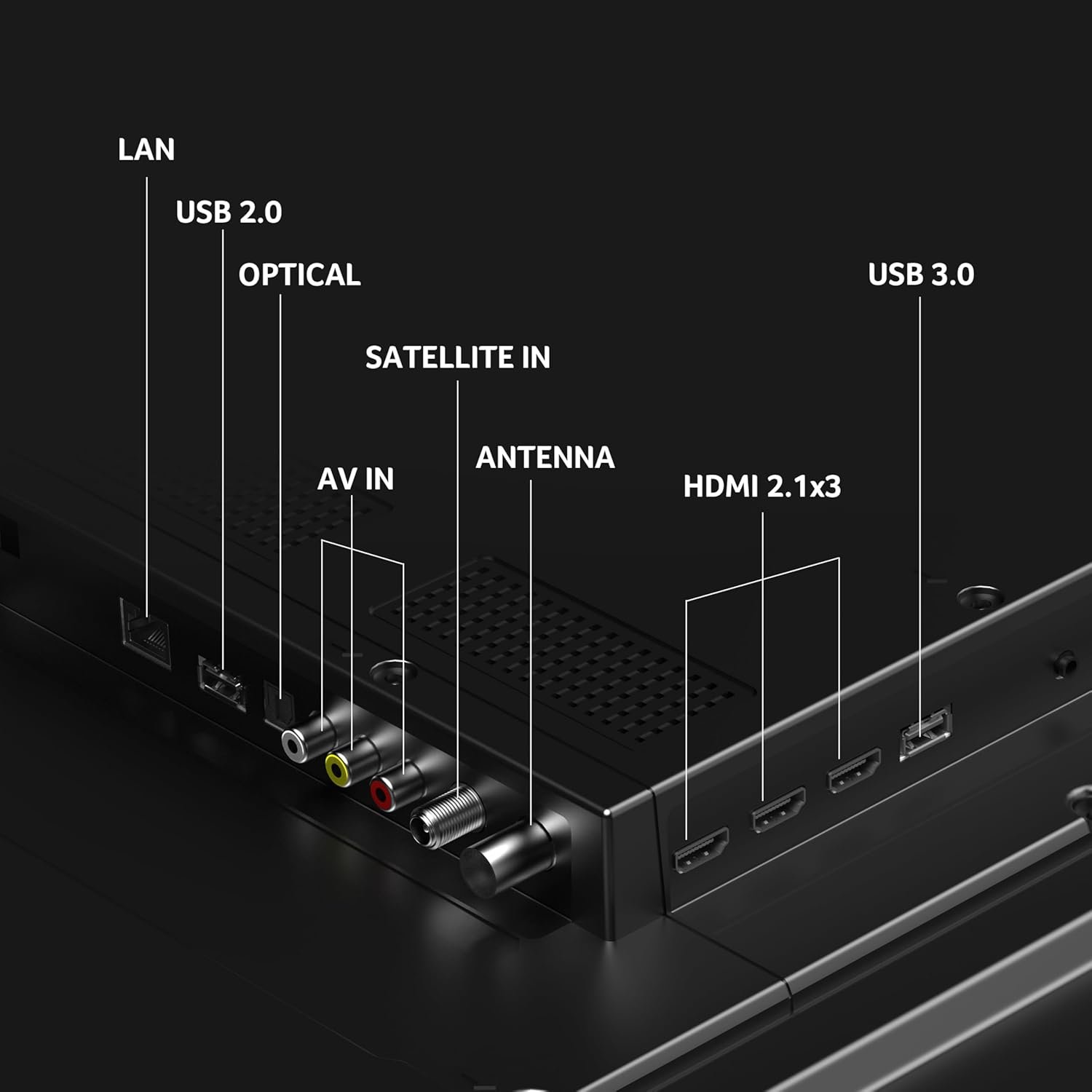 Connectivity: Dual-band Wifi | 2-way Bluetooth | AV, RF, Ethernet, headphone×1 | MEMC | ALLM | HDMI Ports 2.1 x 3 to connect personal computer, laptop, set-top box, gaming console | USB 2.0×1, 3.0×1 to connect hard drives or other USB device