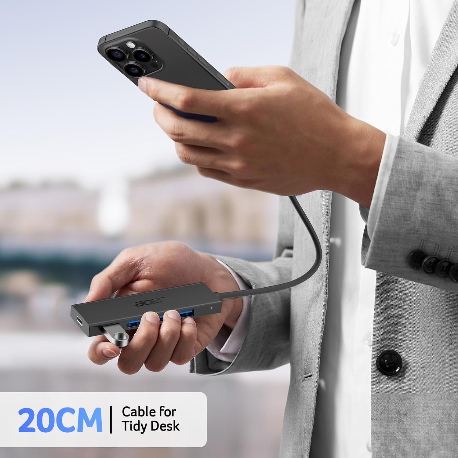 Acer USB C Hub for Laptops 4-in-1, Multi USB 3.0 Port Hub Extension Adapter, Type C to A Splitter Extender for Keyboard, Mouse, Compatible with acer PC, XPS, Surface, ThinkPad – 0.7FT/21cm
