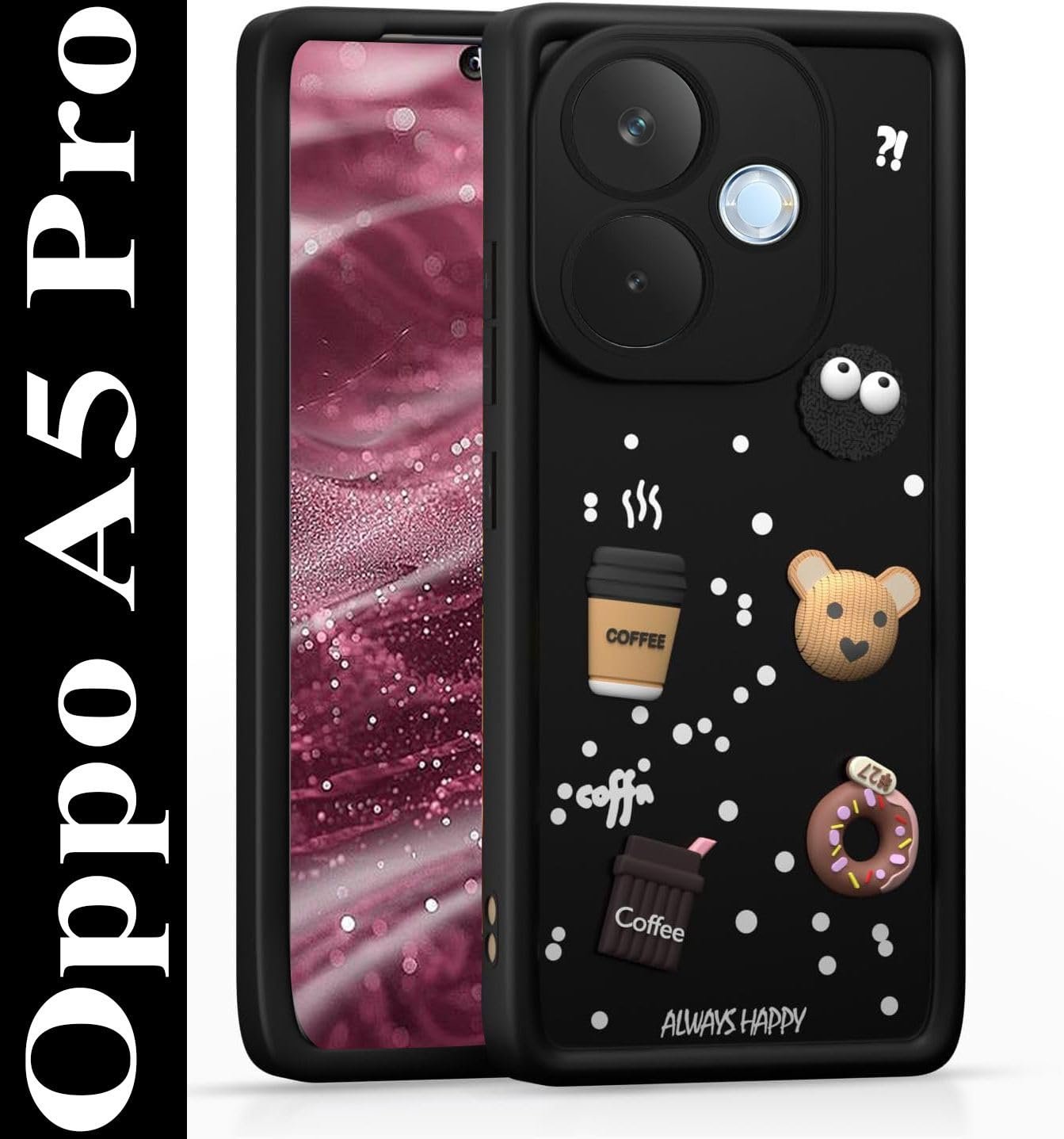 AeoFit Silicone Back Cover for Oppo A5 Pro 5G | Cute Fun 3D Cartoon, Coffee Design Silicone Case | Full Body Protection Bumper Case (Black)