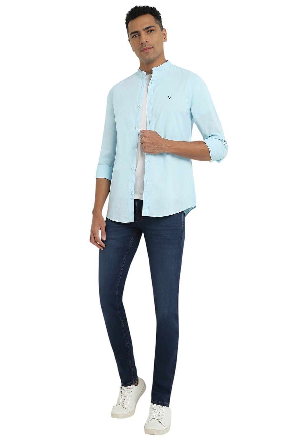 Look effortlessly stylish when you don this blue solid shirt, tailored for a Slim Fit, from Allen Solly by Allen Solly.