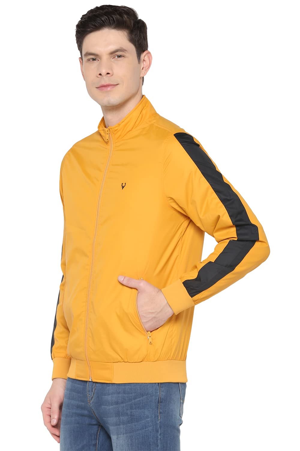 Get your layering game on point with this yellow patterned jacket from Allen Solly by Allen Solly.