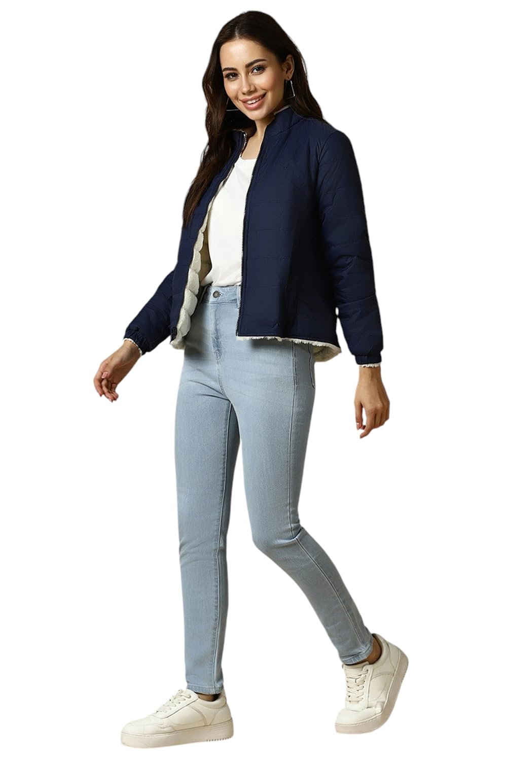 Give a smart finish to your winter ensemble in these Cream Solid Jacket from Allen Solly Woman by Allen Solly.