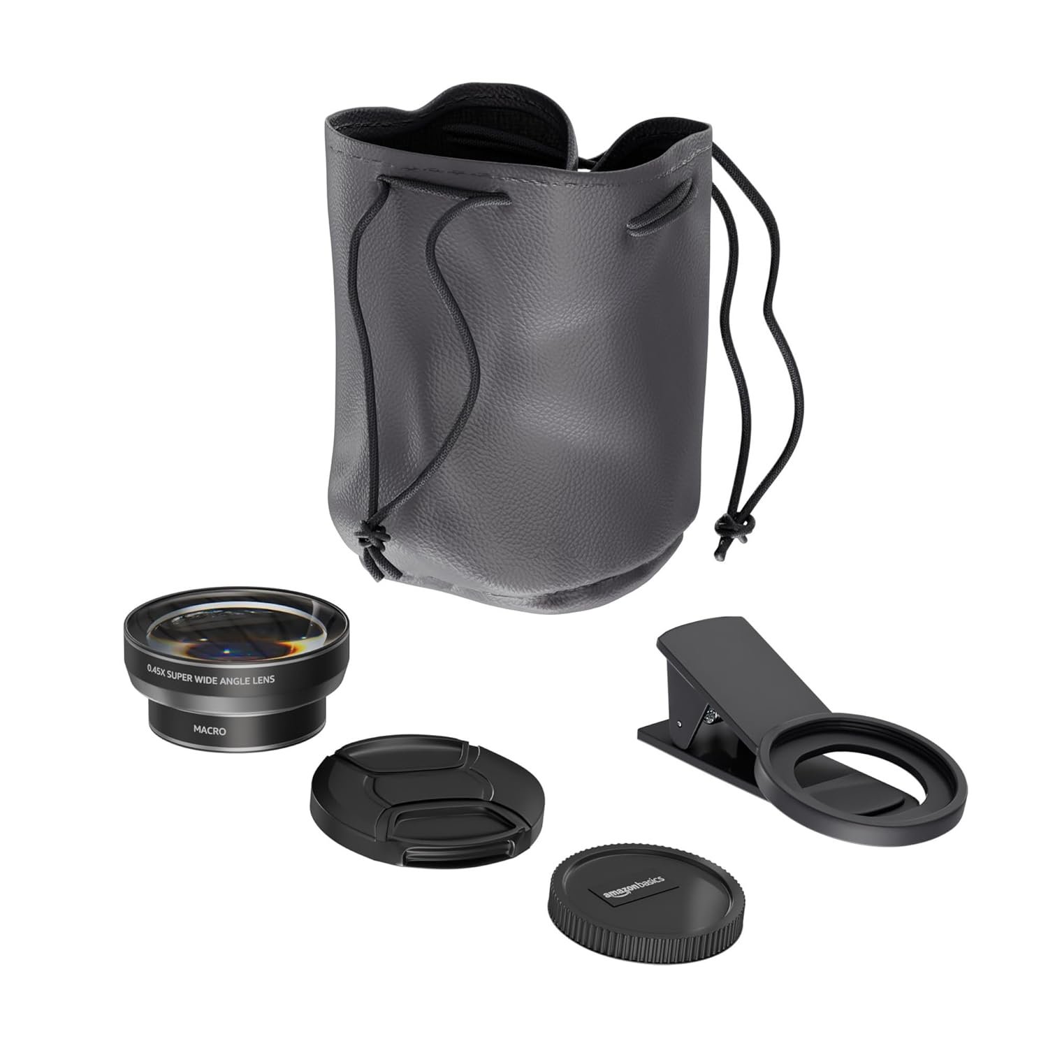 Amazon Basics 2-in-1 Clip On Camera Lens Kit | 0.45X Wide Lens + 15X Macro Lens | Compatible with iPhone, Samsung and Other Smartphones