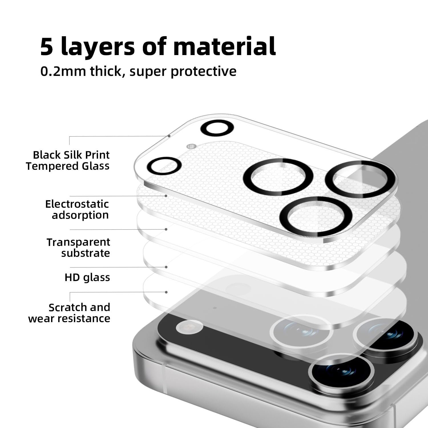 amazon basics Black Camera Lens Protector for iPhone 17 Pro (9H Hardness.Scratch Resistance) with Free Installation Kit