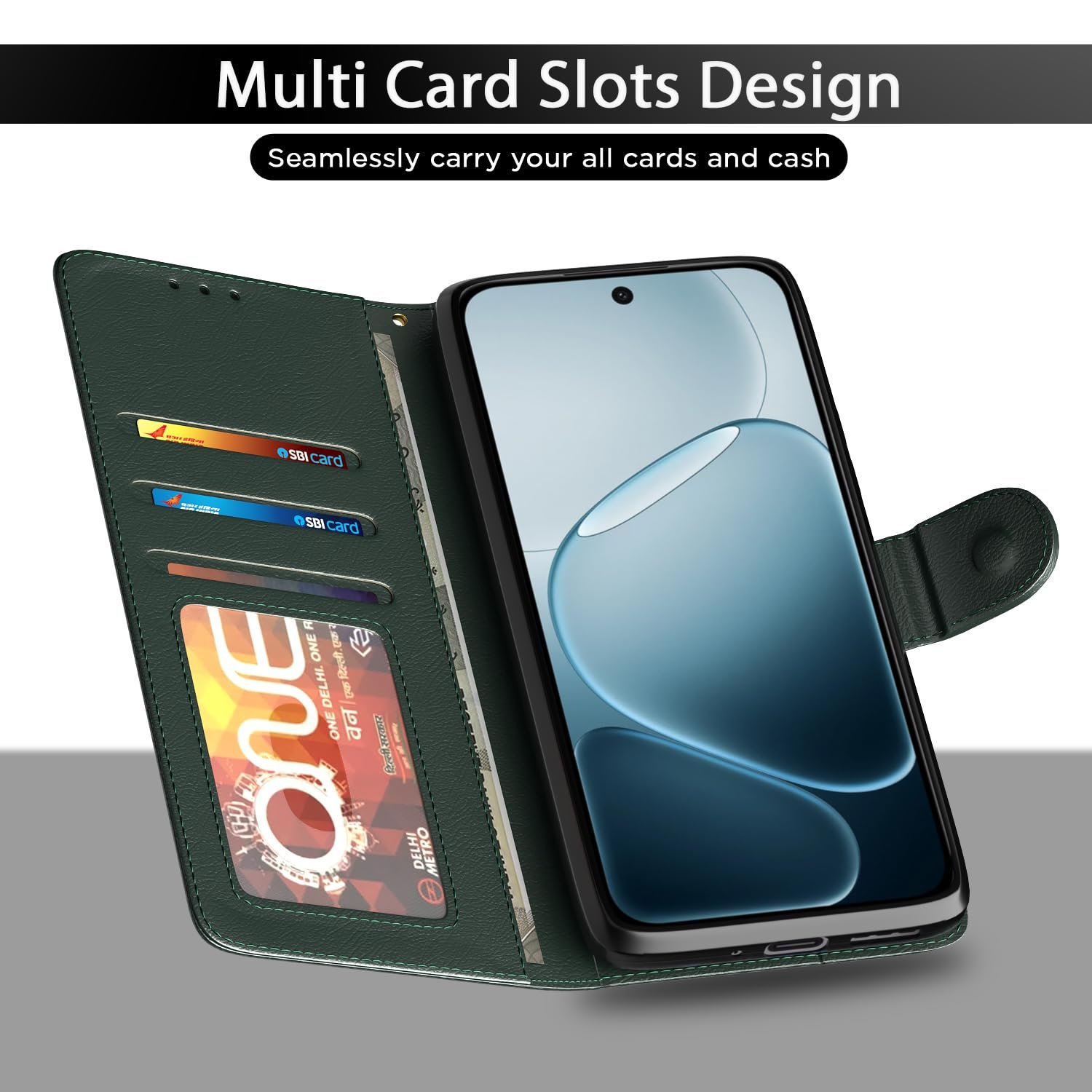 Amazon Basics Flip Cover for Oppo F31 Pro Plus 5G Leather Finish | Wallet Stand and Shock Proof | Inside TPU with Card Pockets | Complete Protection Flip Case (Green)