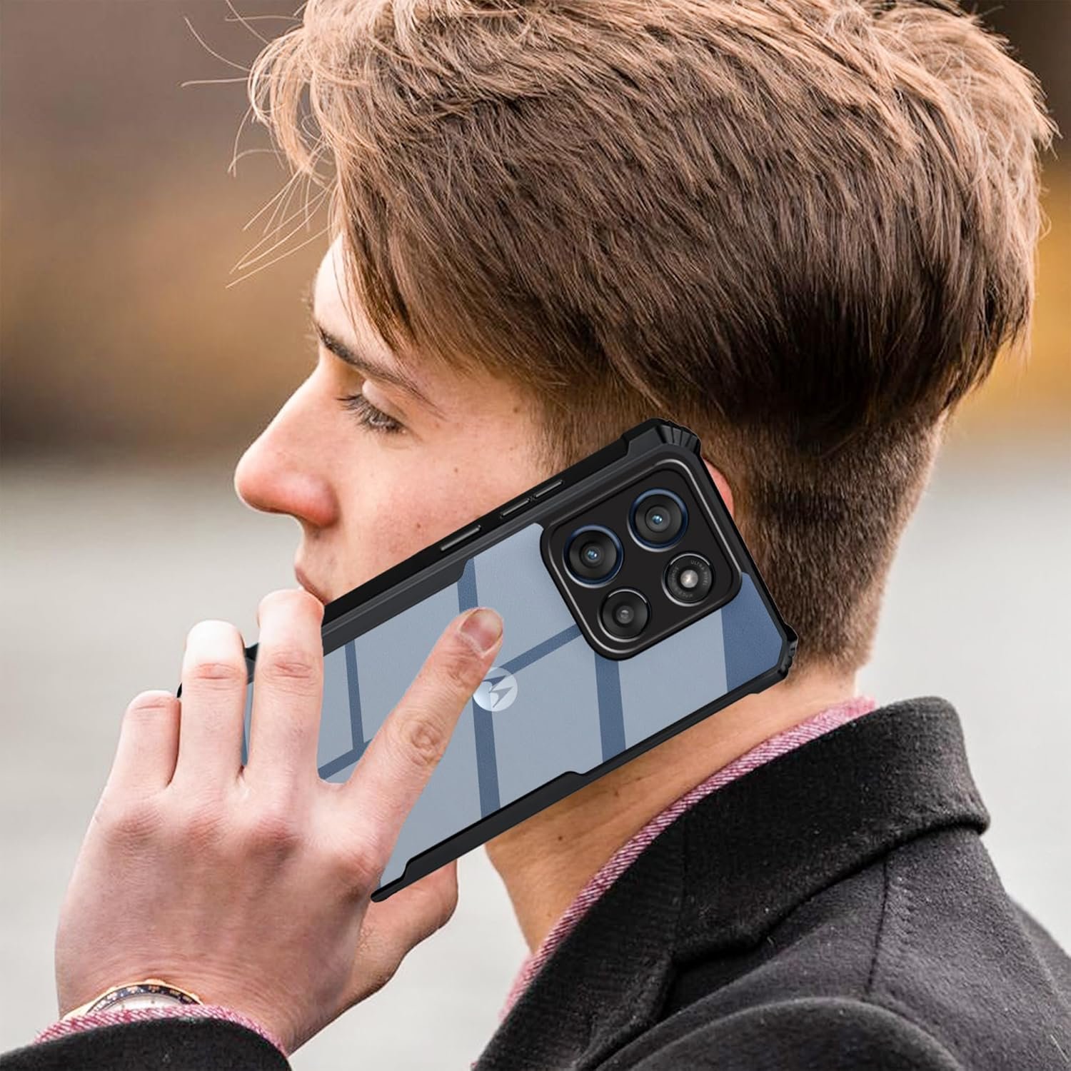 Amazon Brand – Solimo Clear Back Cover Case for Moto Edge 60 Fusion 5G | 360 Degree Protection | Transparent Back Cover Case for Moto Edge 60 Fusion 5G (PC & TPU, Black Bumper)