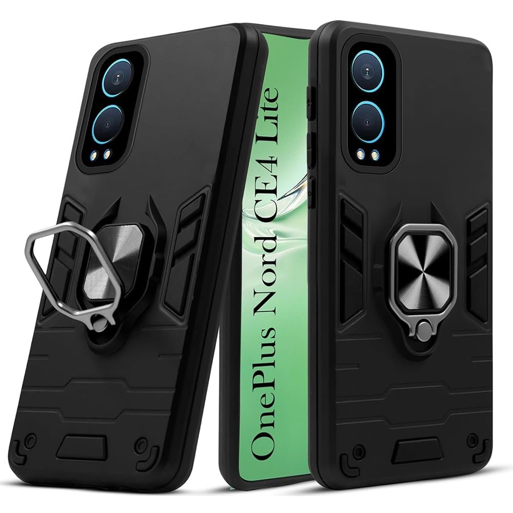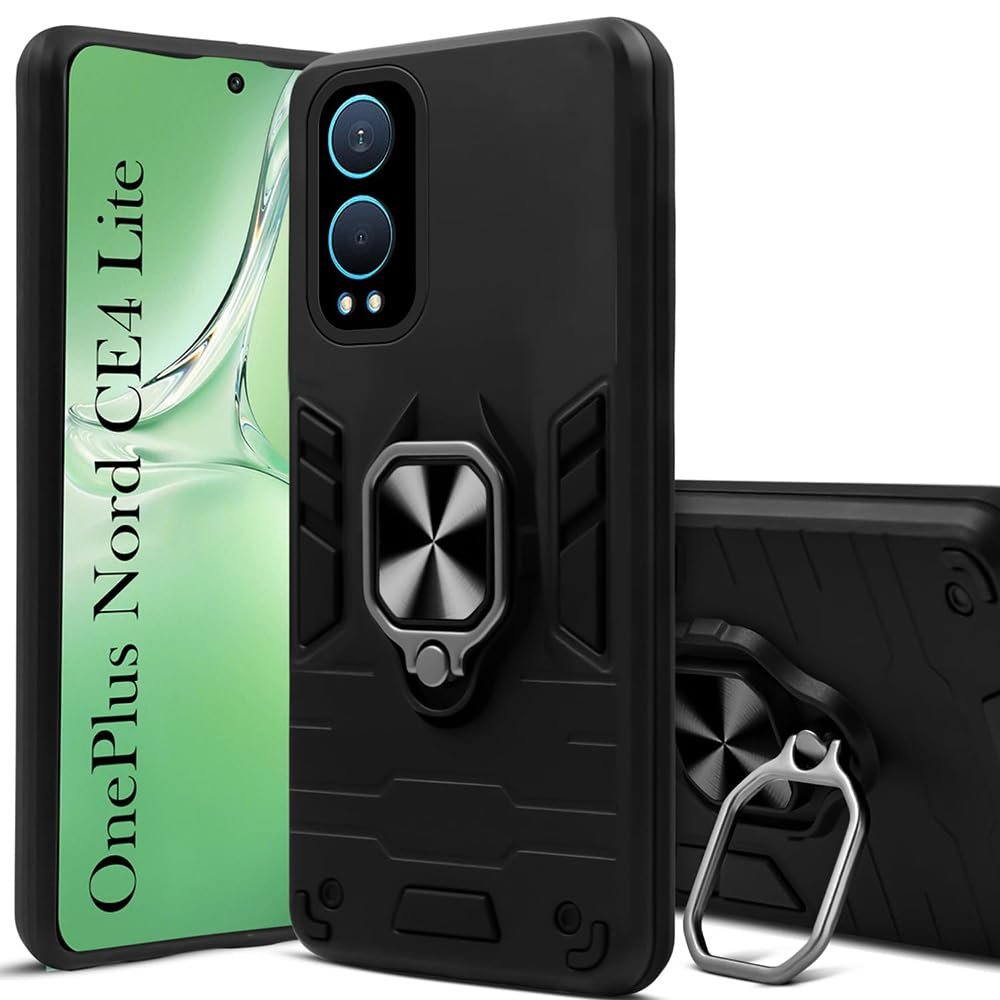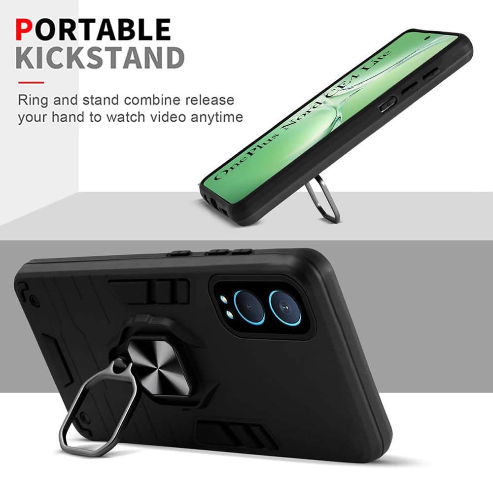 Amazon Brand – Solimo Kickstand Mobile Back Cover (360° Rotating Ring Holder) for OnePlus Nord CE4 Lite 5G (Black)