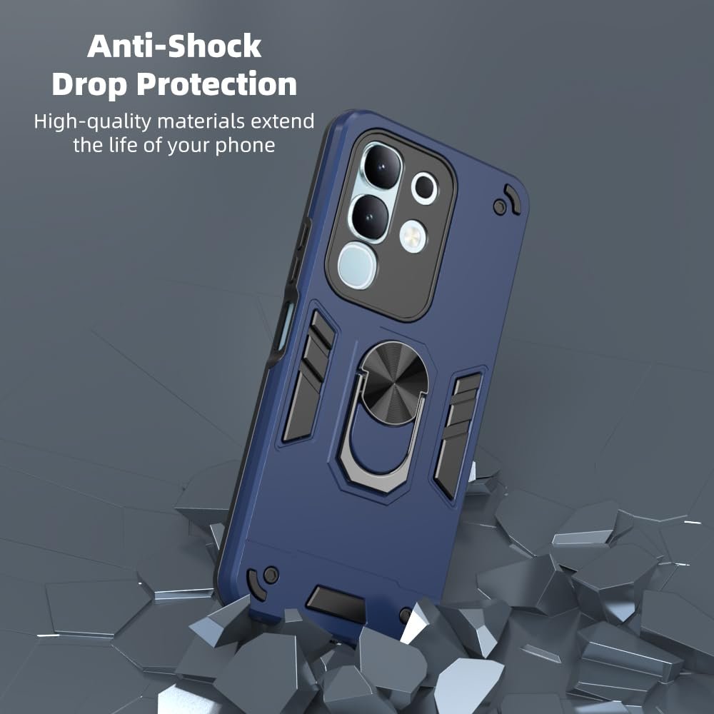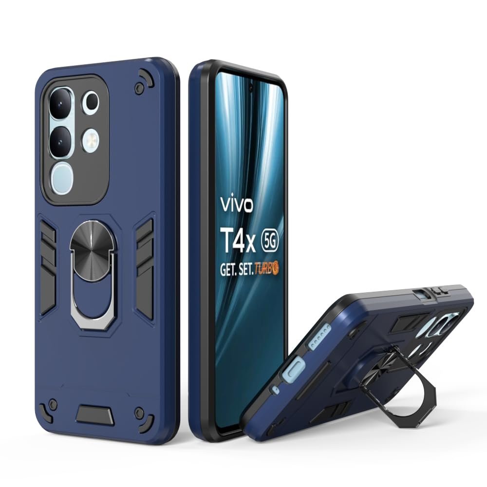Amazon Brand-Solimo Kickstand Mobile Back Cover (360° Rotating Ring Holder) for Vivo T4x 5G / Y29 4G / Y31 Pro 5G / iQOO Z10x 5G (Blue)