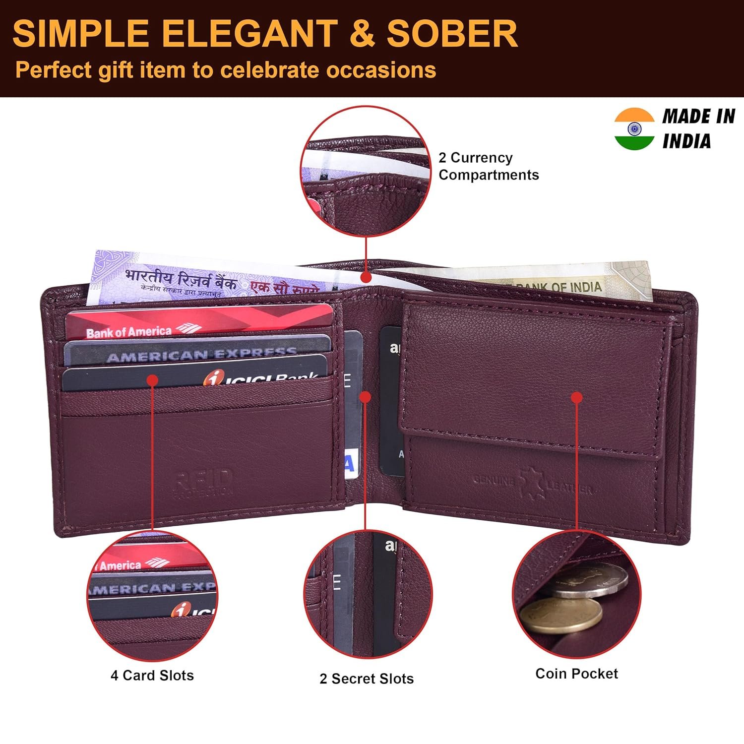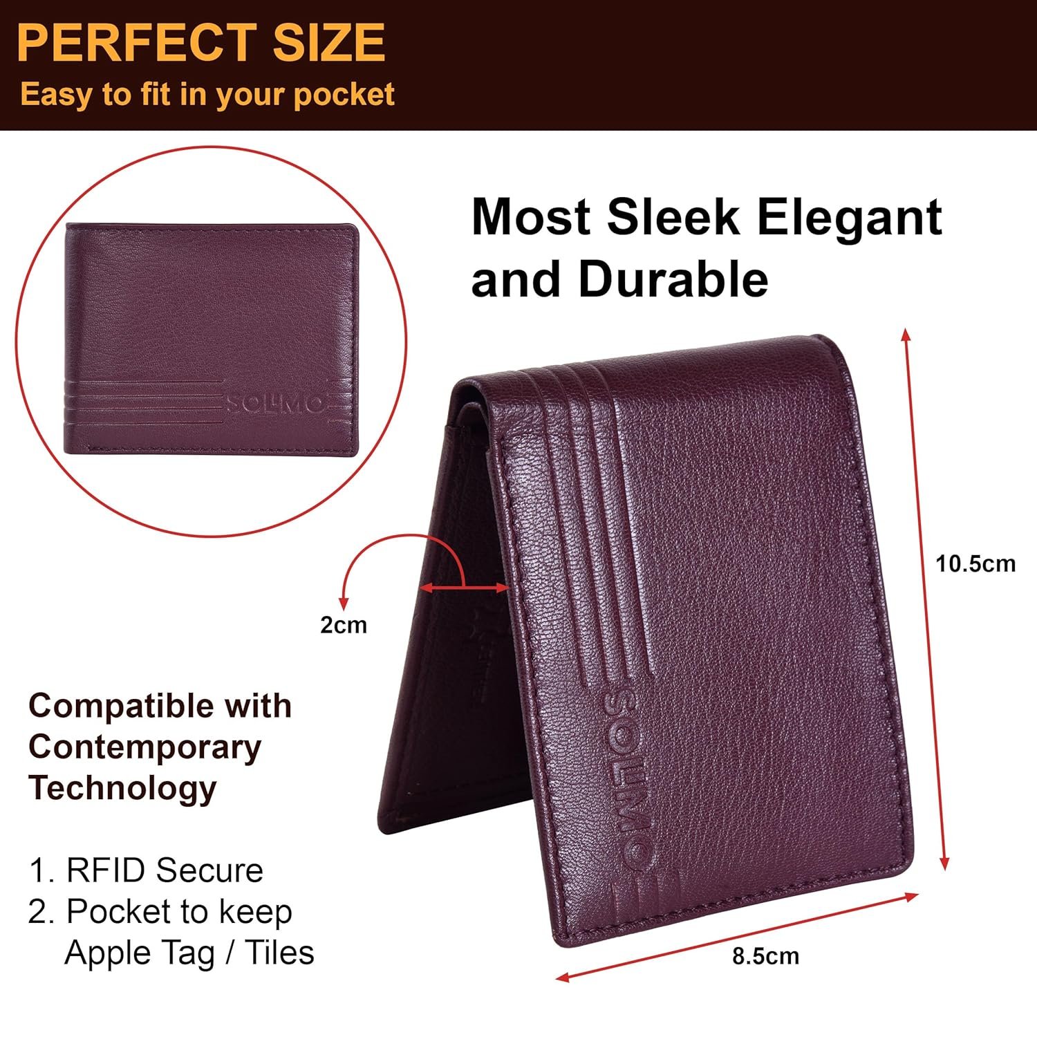 Compact & Stylish: Measuring 10.5 cm x 8.5 cm, this lightweight wallet offers a sleek yet spacious design, ideal for everyday use.