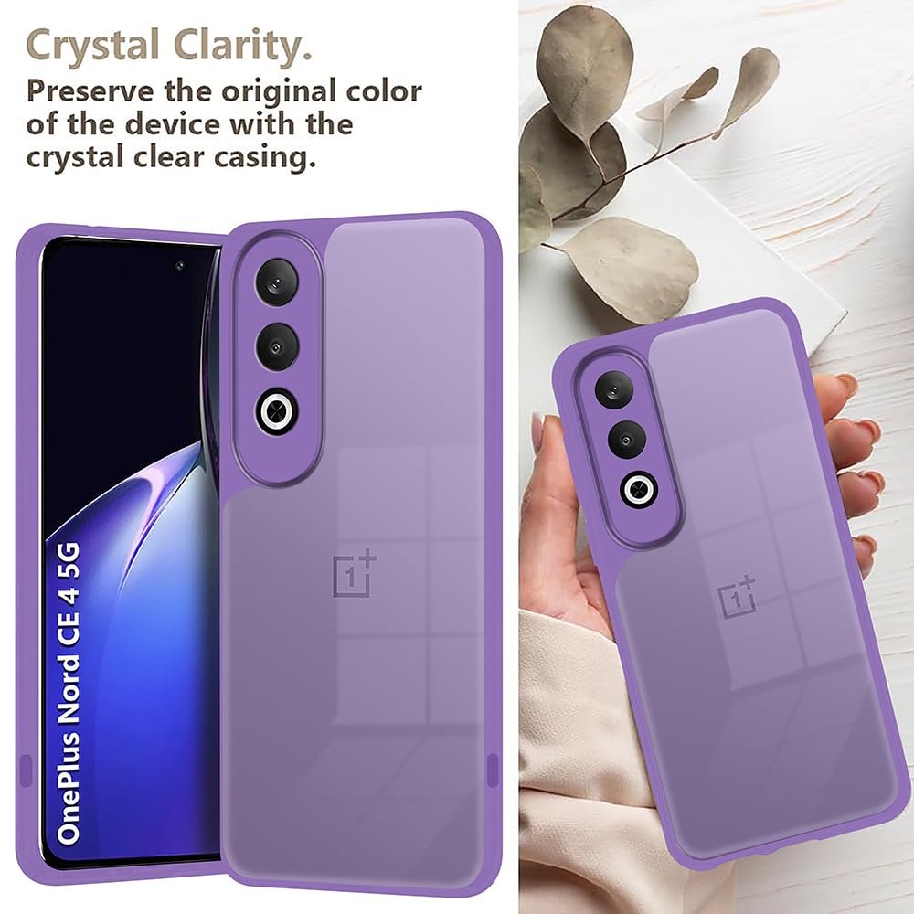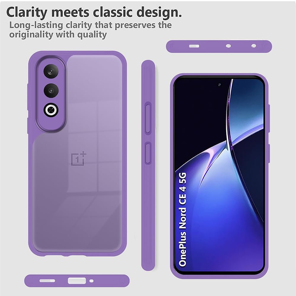 Amazon Brand-Solimo Oneplus Nord CE4 5G Back Cover | Anti-Slip Grip Case | Thin Slim Super Clear | Shockproof Bumper TPU Case for Women Girls (Clear/Purple)