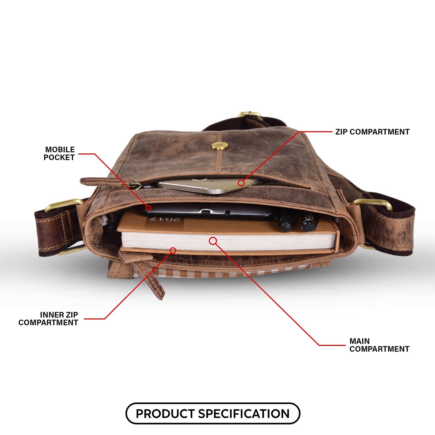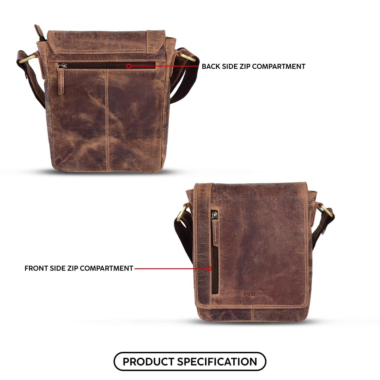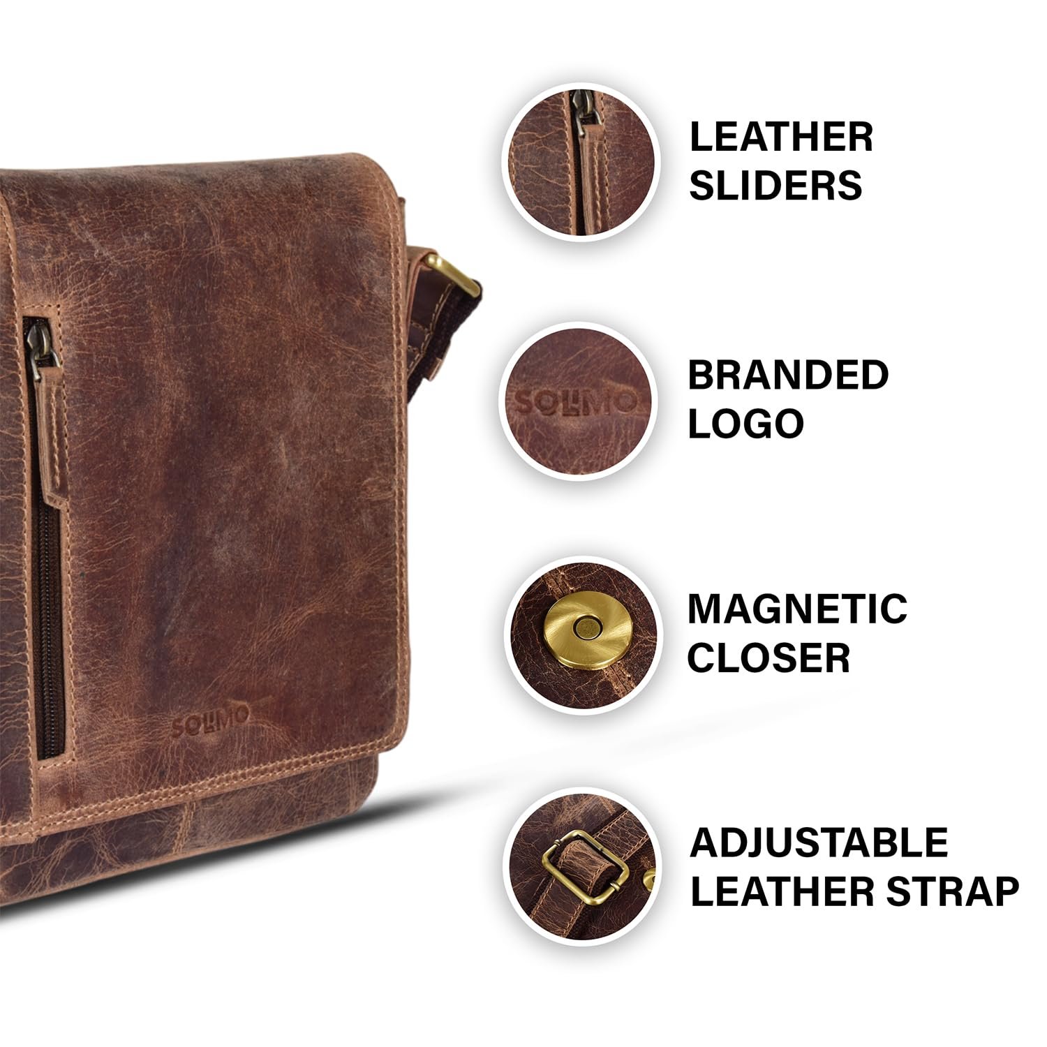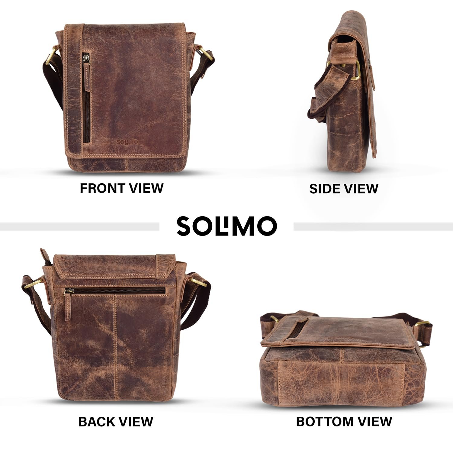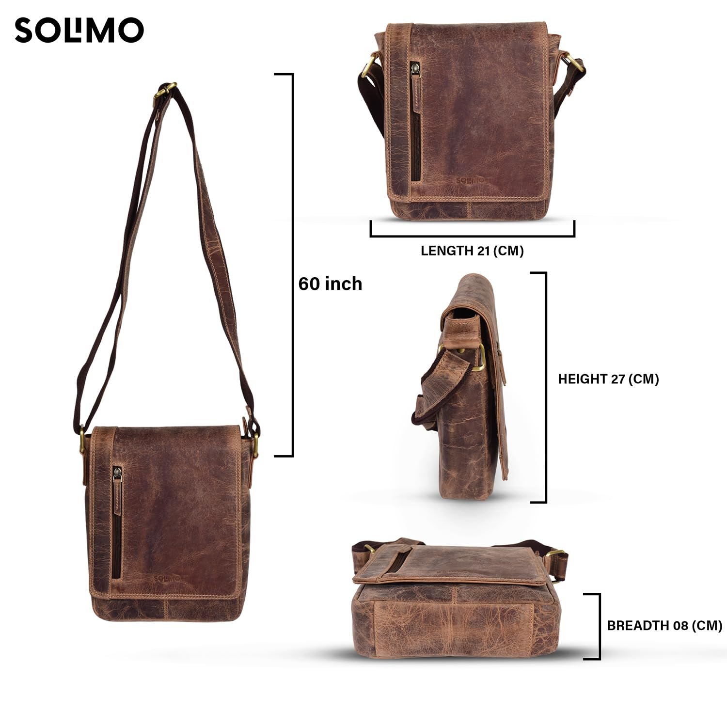 Amazon Brand – Solimo Texas Genuine Leather Messenger Crossbody Sling Bag for Men & Women Adjustable Strap Upto 60 Inches