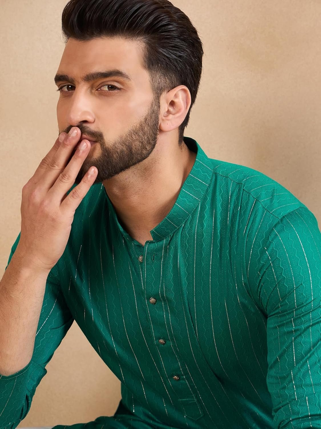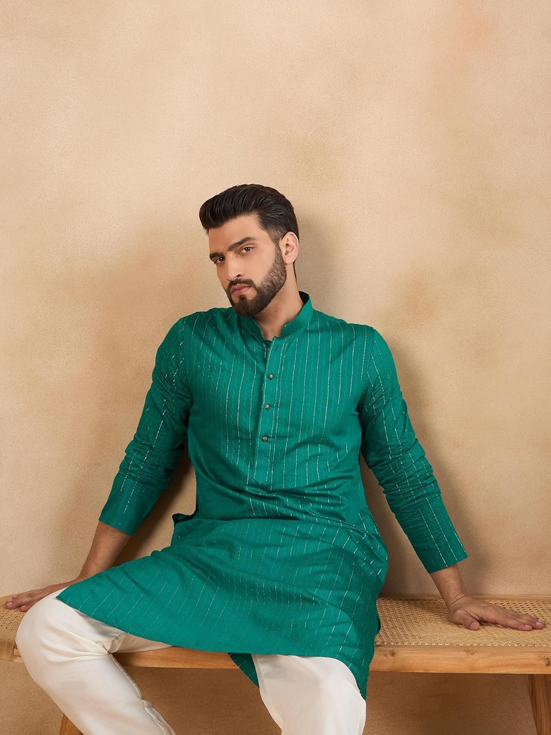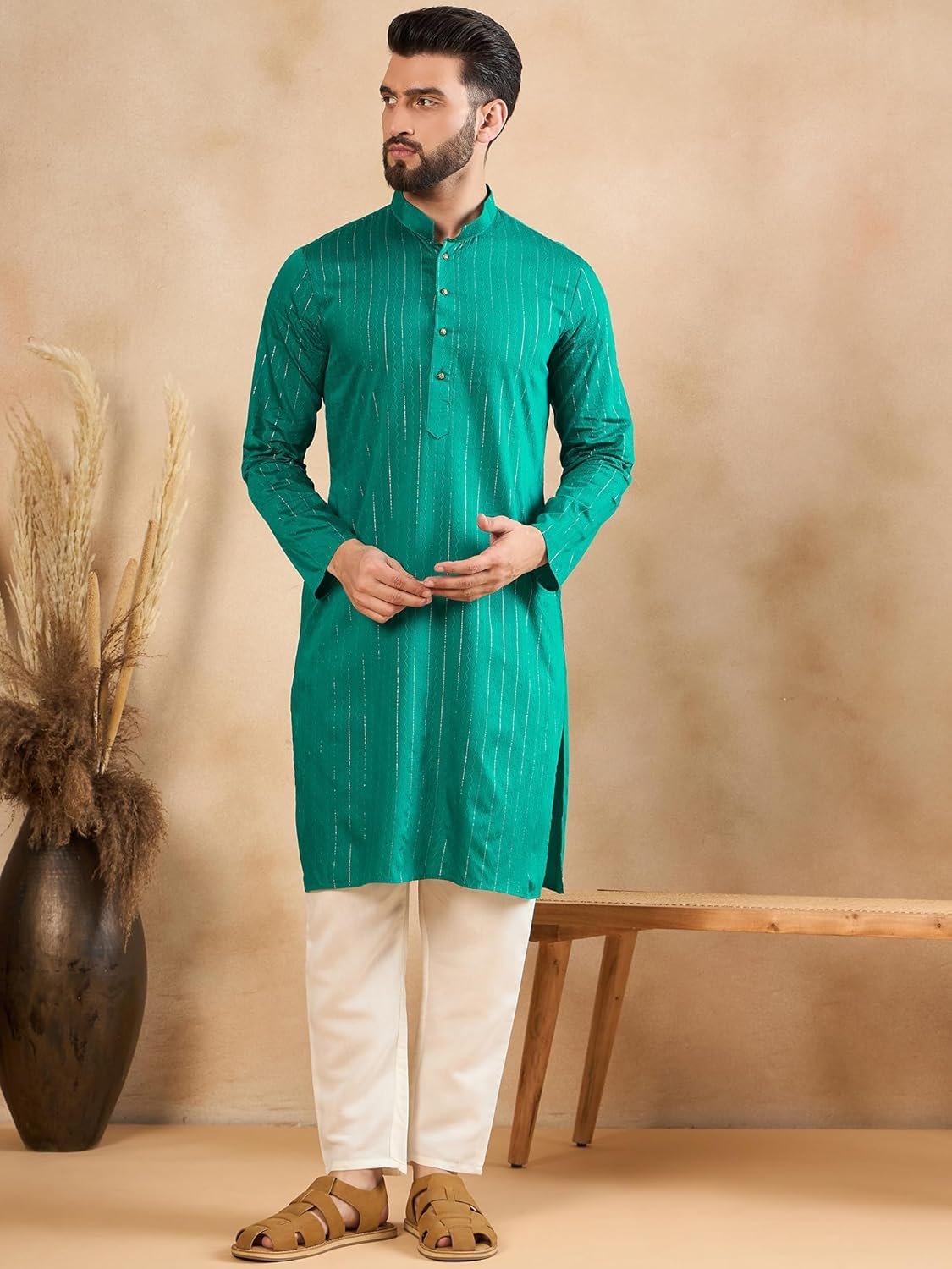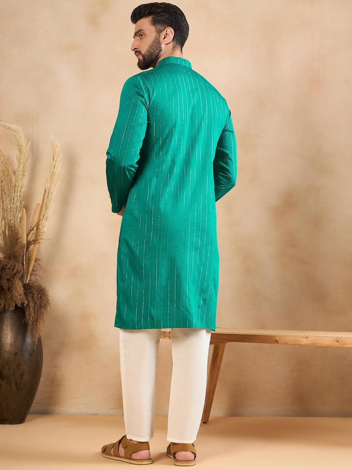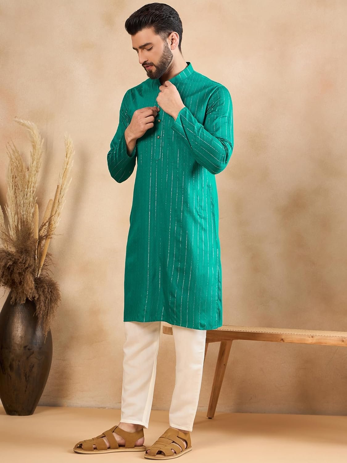 Customers find the kurta stylish, with one mentioning its beautiful simmer sequence design and gold vertical stripes. They appreciate its versatility, with one customer noting it’s suitable for both casual and semi-formal events.