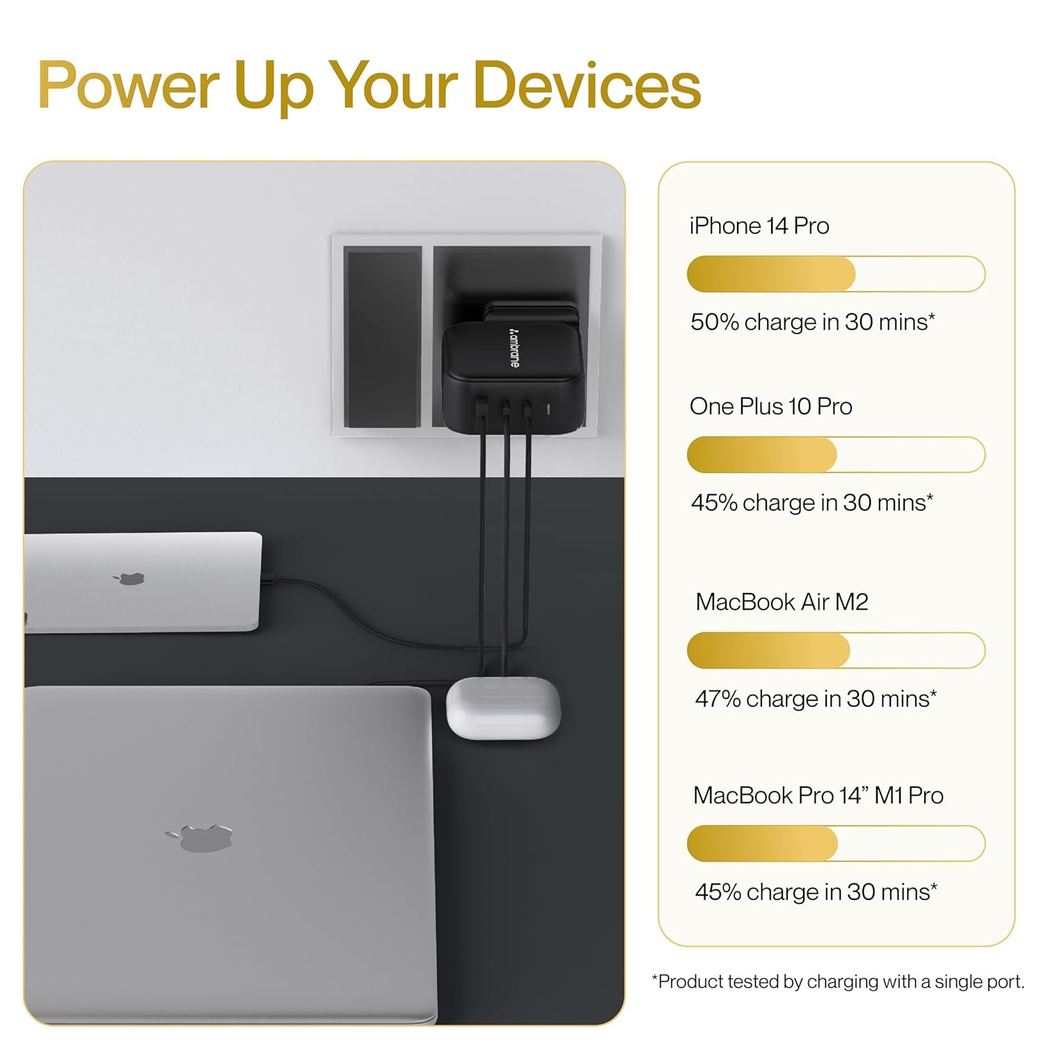 The RAAP G65 outperforms standard chargers, charging a MacBook Air in just 1 hour 40 minutes, ensuring your laptops are ready to use in record time.
