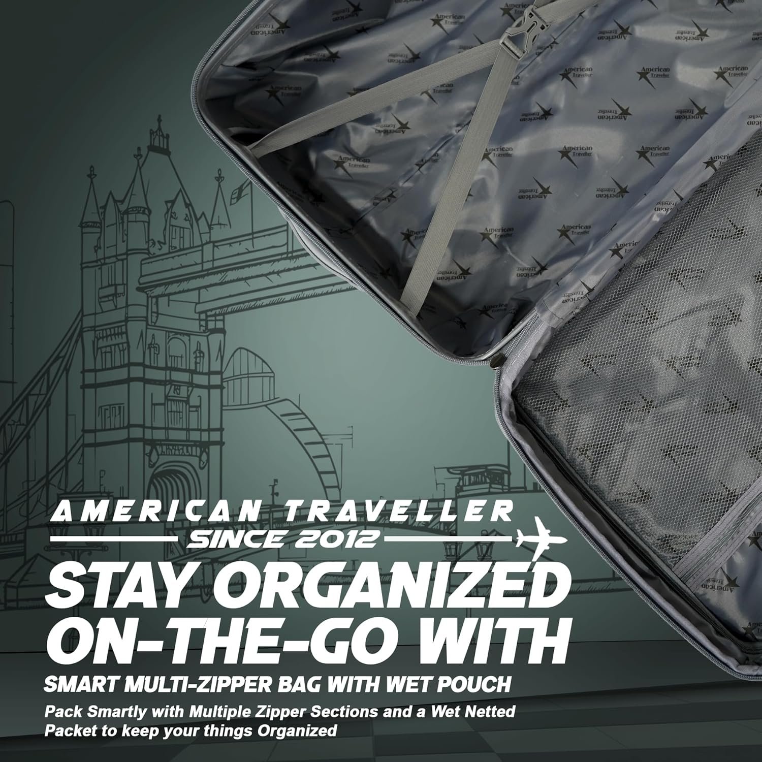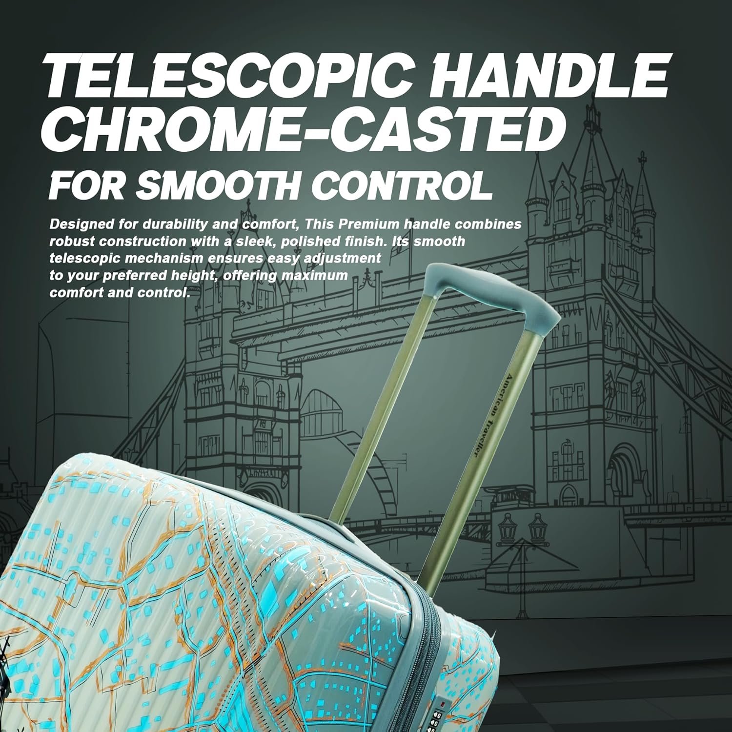 Meet your perfect travel partner – the AMERICAN TRAVELLER London Tower Trolley Bag Set of 3, thoughtfully designed for style, strength, and security. Whether you’re heading for a short escape or a long-haul adventure, this suitcase for travel set of 3 is engineered to deliver unmatched performance and elegance. Crafted from a durable hard shell, each trolley bag is lightweight, scratch-resistant, and built to handle life on the move. The Set of 3 – Cabin, Medium, Large gives you the flexibility to pack just right for every trip. With the ability to nest into one another, this luggage trolley set also stores compactly when not in use. Experience the smooth glide of the 360° LEGO Silen Wheel system that moves in every direction with minimal noise or effort—making this the ideal spinner trolley luggage for busy airports and bustling streets. For added peace of mind, each bag is equipped with a secure TSA type lock and anti-theft zippers, offering superior protection for your valuables. The interiors are just as smart, featuring dual compartments with wet/dry separation, zip pockets, and compression straps that keep your belongings organized and wrinkle-free. The telescopic handle ensures easy maneuvering, while the top and side grips offer multiple lifting options. Stylish in every way, the bright yellow design stands out on any carousel. From the durable materials to the ergonomic build, this trolley bag set of 3 is the perfect blend of form and function. Backed by a 730-day warranty, the American Traveller London Tower travel suitcase set is your trusted companion for journeys far and wide. Choose this trolley bag collection when you want reliability, innovation, and standout style—all in one premium luggage trolley set.