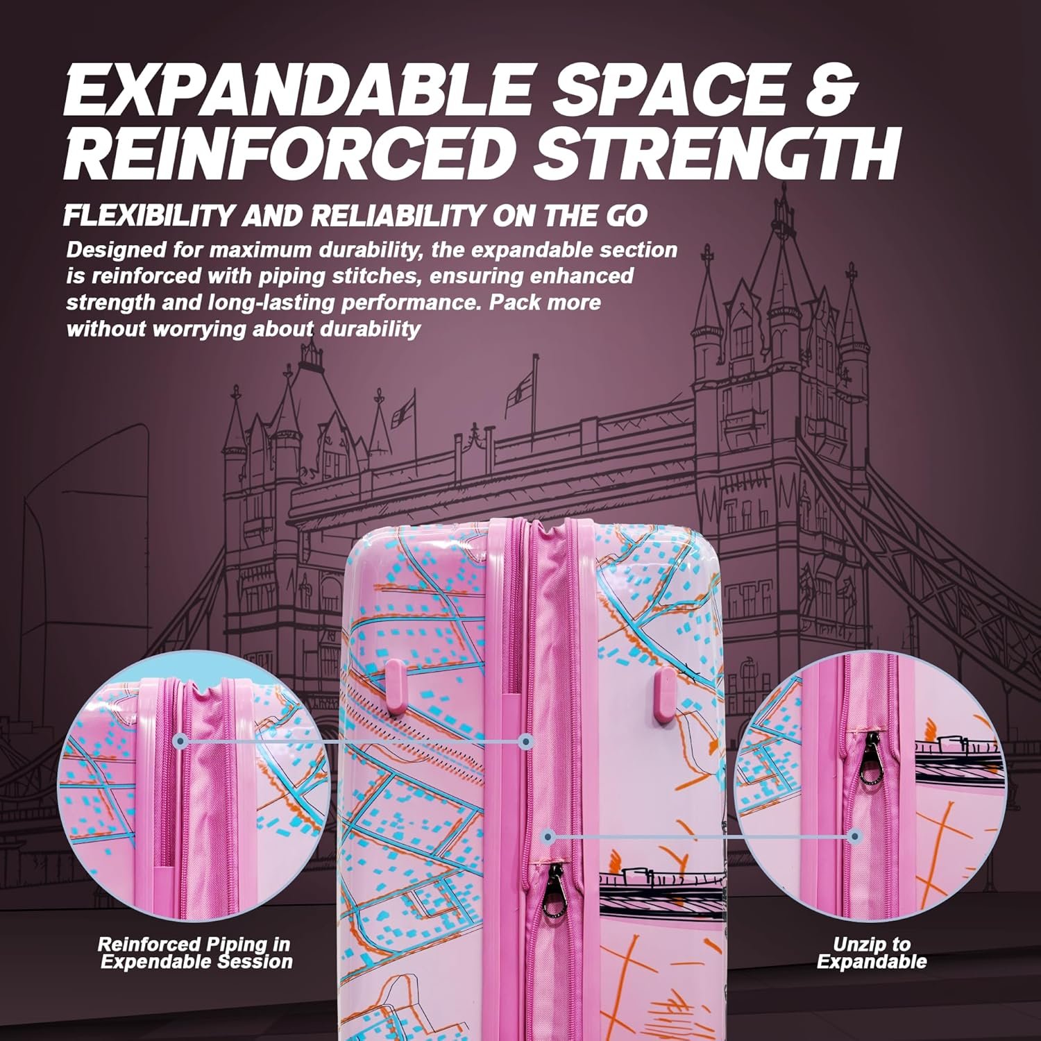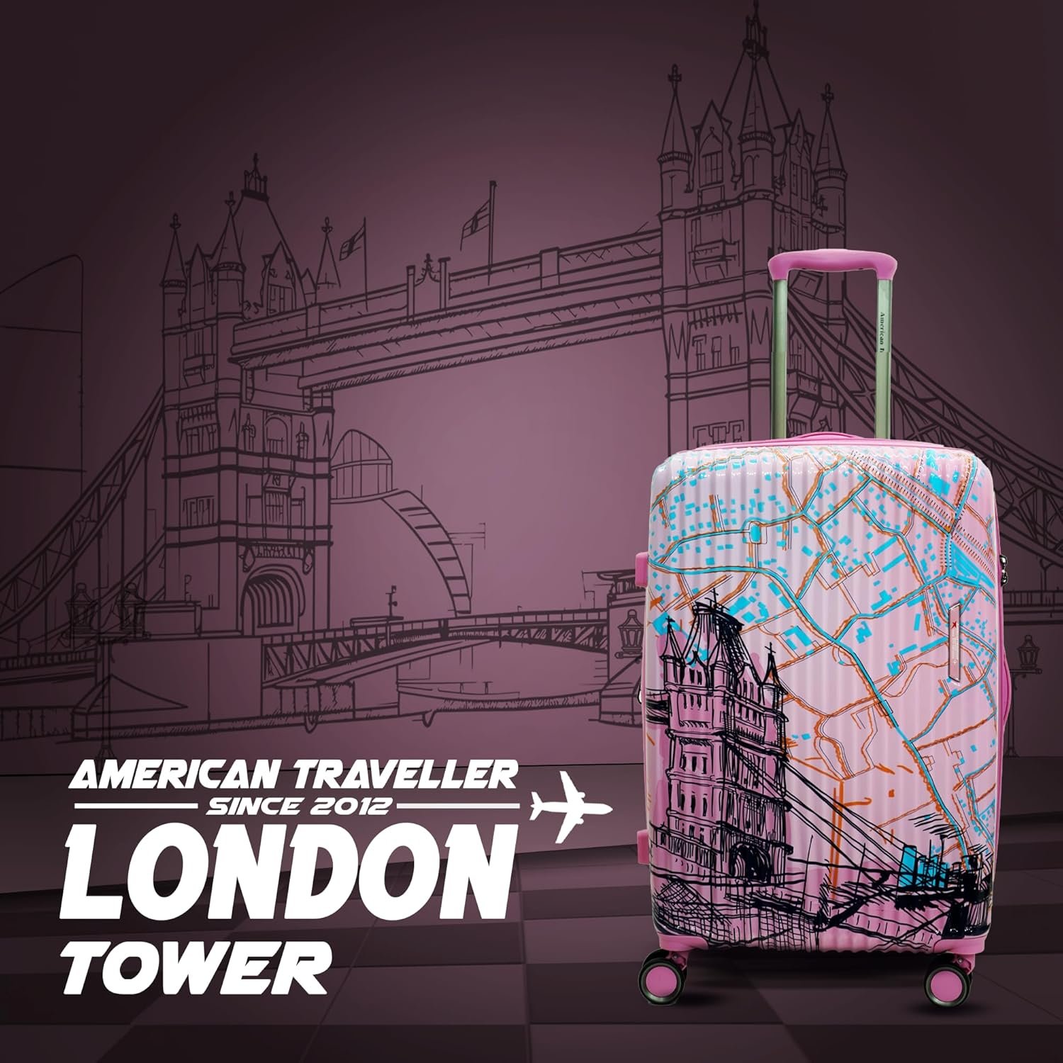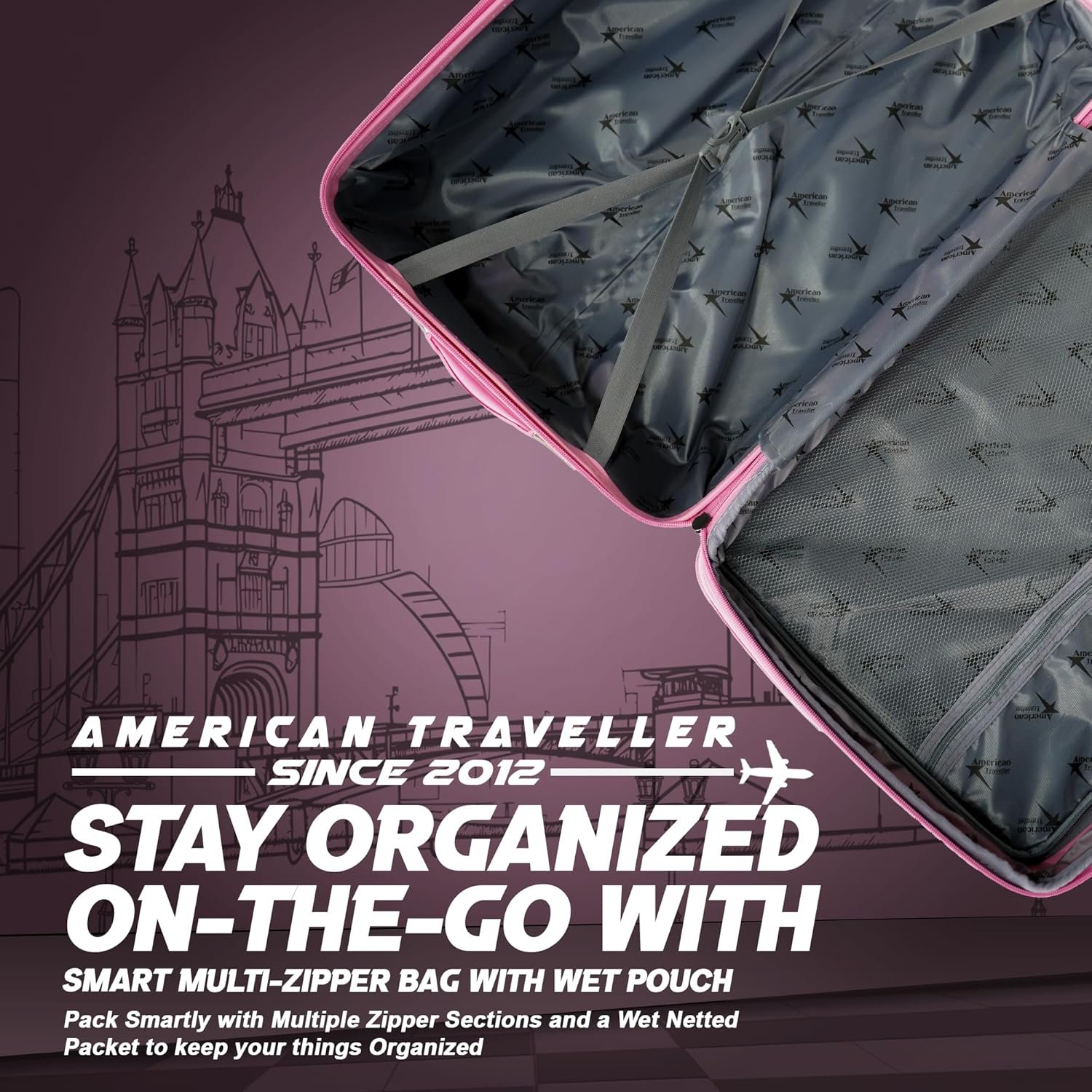 AMERICAN TRAVELLER London Tower Trolley Bag Set of 3 | Lightweight Polycarbonate Hard Shell Luggage | 360° Spinner Wheels | Expandable Suitcase | Stylish Luggage | Trolley Bag Combo (1, Pink)