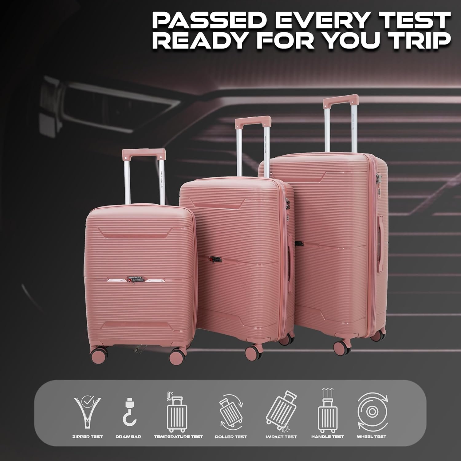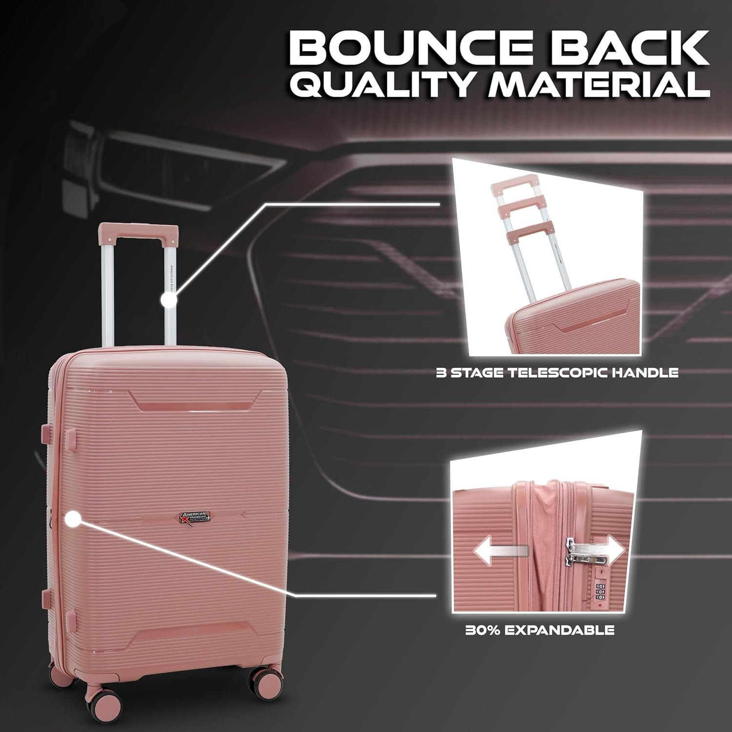 AMERICAN TRAVELLER Touris Bliss 8024 Hardshell Luggage Set, Polypropylene, Expandable Spinner Trolley with TSA Lock, Anti-Theft Zippers, 3 Pieces (3, Rose Gold, S,M,L)