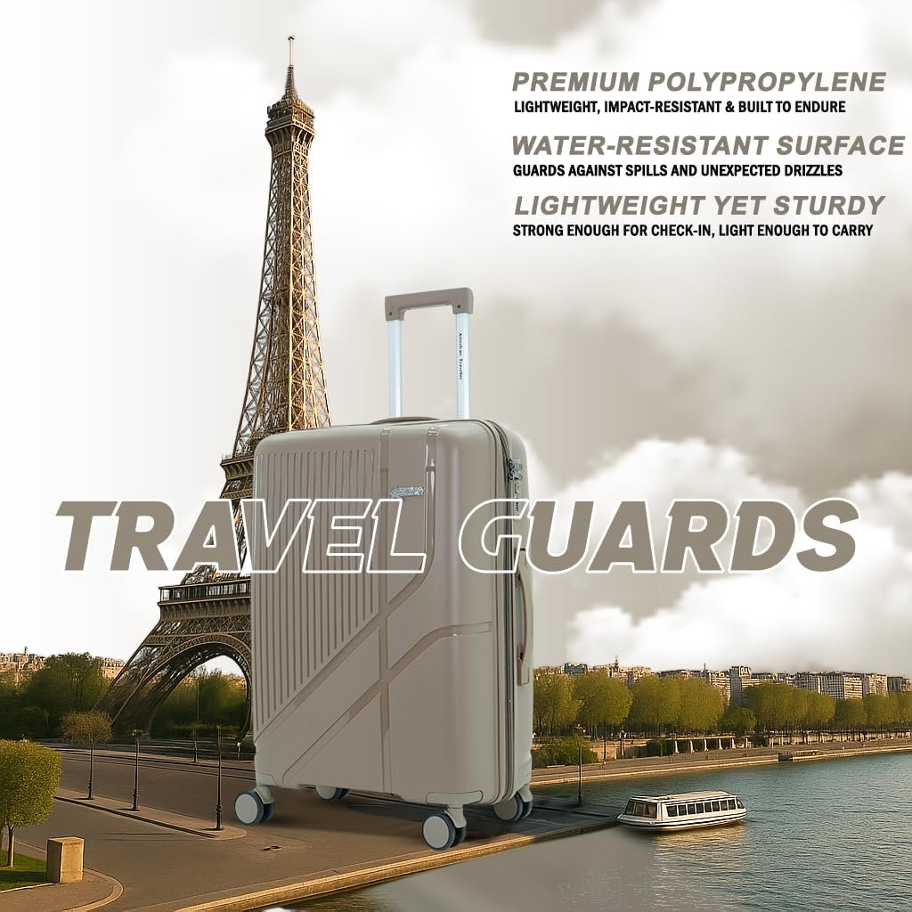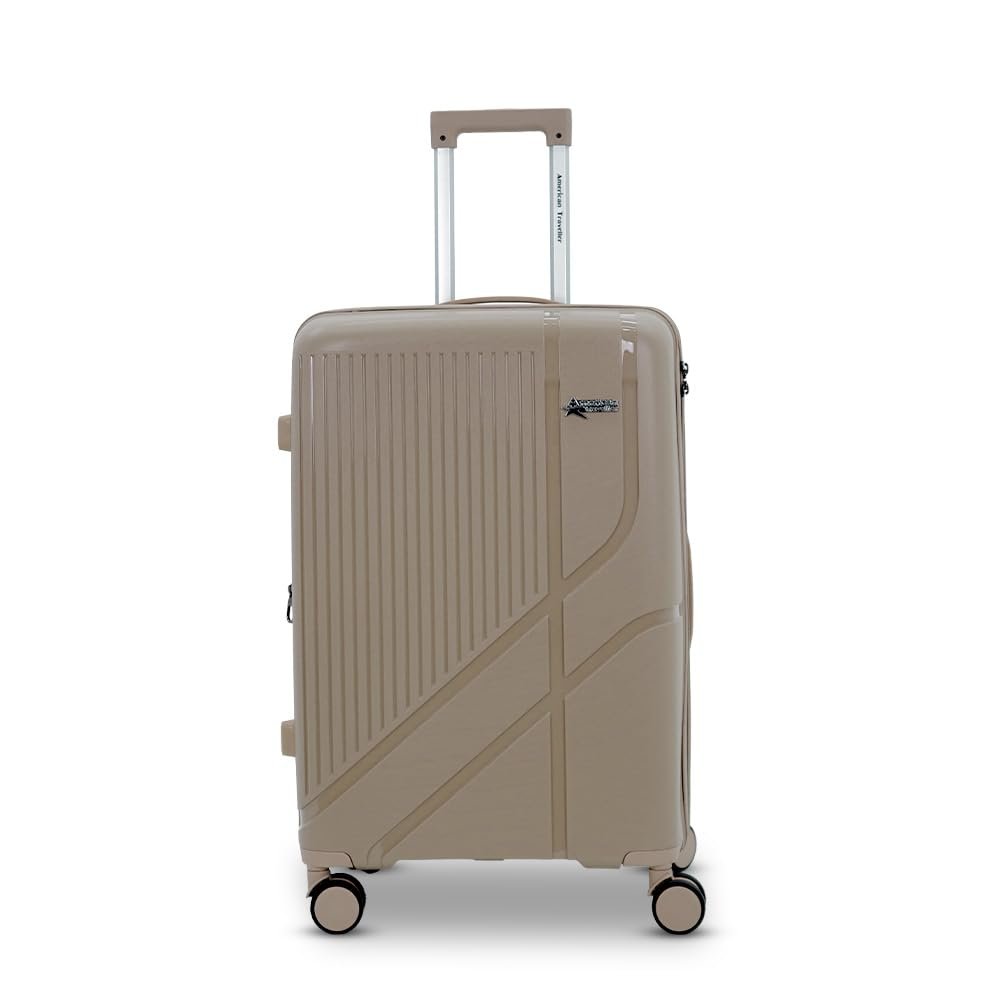 AMERICAN TRAVELLER TourisPoineer Trolley Bags Cabin – Large Polypropylene Hardshell Expandable Travel Luggage Bag with 8 Disc Wheels & TSA Type Lock. (Small 20, Beige)