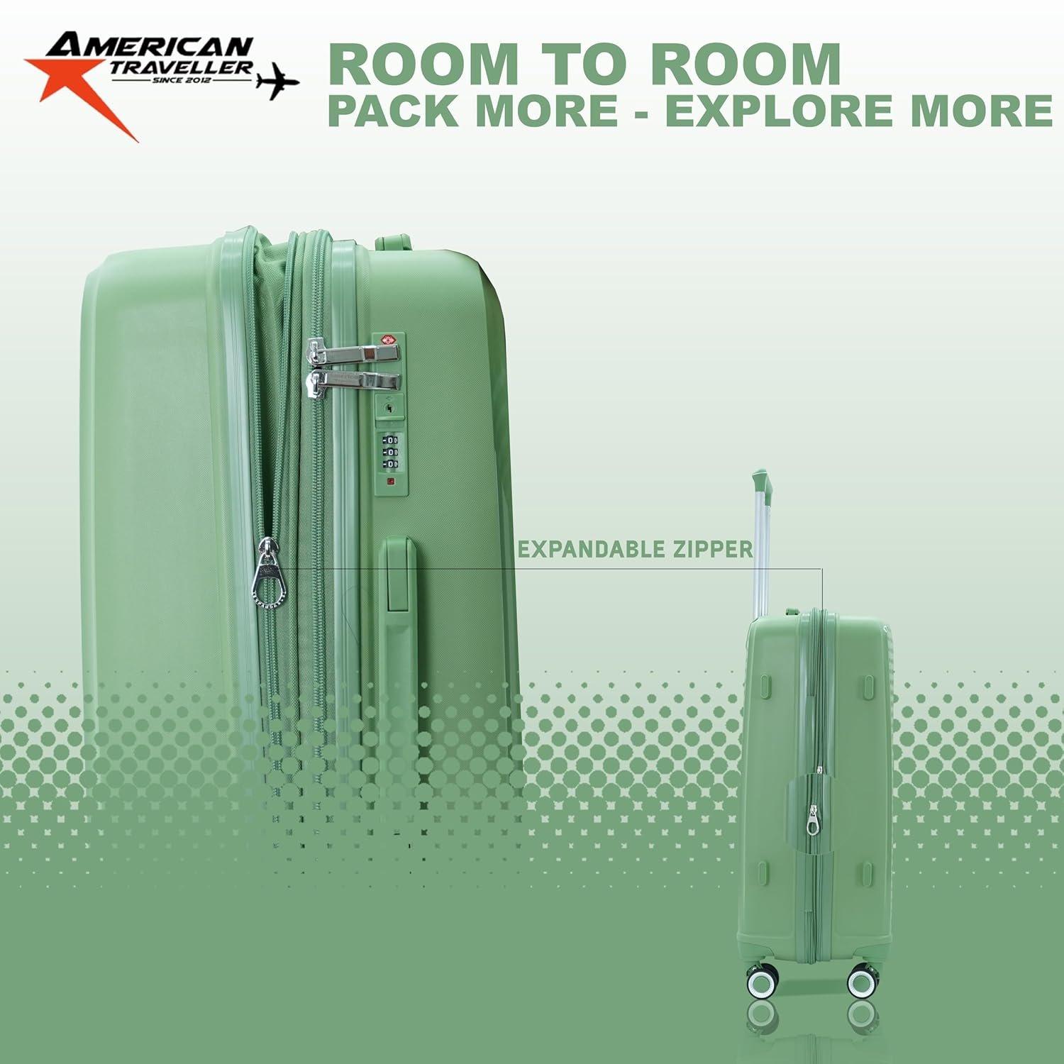 AMERICAN TRAVELLER Tourispro 2.0 Trolley Bag Lightweight Large | Expandable Suitcase | Polypropylene | Travel Luggage Bag |TSA Type Lock | 8 Disc Wheels (24, Mint Green)