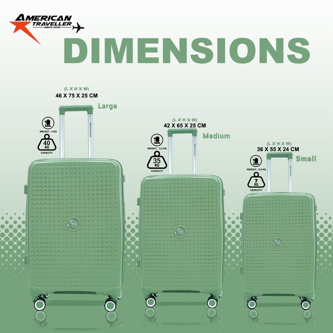 Travel smart and in style with the American Traveller TourisPro 2.0 Travel Suitcase Set, a reliable trolley bag set of 3 that meets every traveler’s needs. This premium suitcase for travel set of 3 includes Set of 3 – Cabin, Medium, Large, giving you a perfect combination of compactness and capacity for all types of journeys. Whether you’re going on a weekend getaway or a long international vacation, this luggage trolley set is built to deliver performance, convenience, and sophistication. Constructed with a durable hard shell, this spinner trolley luggage can withstand rough handling while keeping your belongings protected. The high-impact resistant surface of this travel suitcase set ensures long-lasting use, making it ideal for frequent flyers. With a stylish and modern design, this trolley bag doesn’t just offer function—it adds flair to your travel look. Enjoy effortless mobility with 360° disc spinner wheels that roll smoothly on all surfaces. The telescopic handle is ergonomically designed for comfort and stability, while the dual carry handles make lifting easy. Stay worry-free thanks to the TSA type lock that complies with airport security and provides peace of mind. Security is enhanced with anti-theft zippers, making this trolley bag set of 3 a secure choice for travel. Inside, you’ll find well-organized compartments, compression straps, and ample space to pack your essentials. Backed by a 730-day warranty, the American Traveller luggage trolley set is your trusted partner for all your adventures. Make every trip effortless, stylish, and secure with this ultimate travel suitcase set.