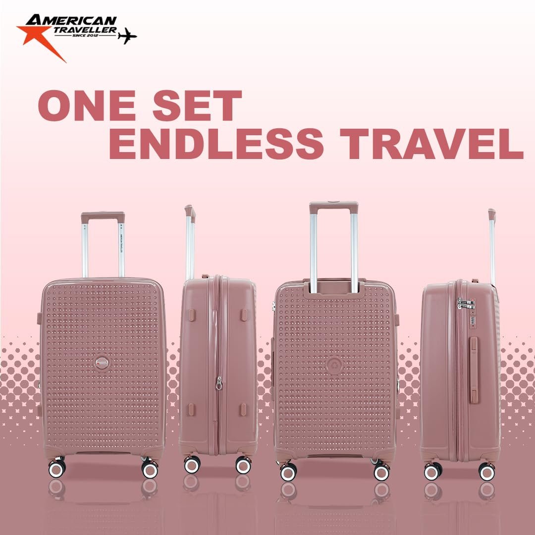 AMERICAN TRAVELLER Tourispro 2.0 Trolley Bags Lightweight | Expandable Suitcase | Polypropylene | Travel Luggage Bag |TSA Type Lock | 8 Disc Wheels (20, Dusty Rose (Pink))