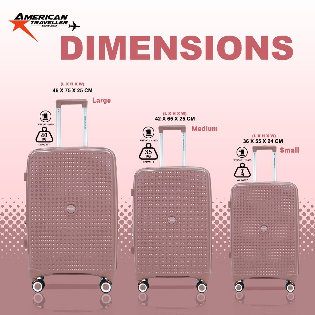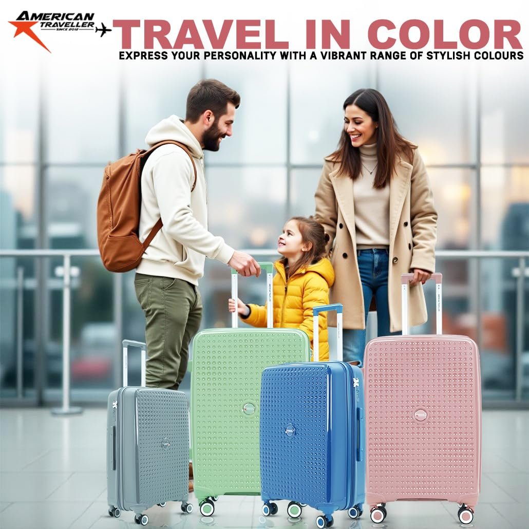Travel smart and in style with the American Traveller TourisPro 2.0 Travel Suitcase Set, a reliable trolley bag set of 3 that meets every traveler’s needs. This premium suitcase for travel set of 3 includes Set of 3 – Cabin, Medium, Large, giving you a perfect combination of compactness and capacity for all types of journeys. Whether you’re going on a weekend getaway or a long international vacation, this luggage trolley set is built to deliver performance, convenience, and sophistication. Constructed with a durable hard shell, this spinner trolley luggage can withstand rough handling while keeping your belongings protected. The high-impact resistant surface of this travel suitcase set ensures long-lasting use, making it ideal for frequent flyers. With a stylish and modern design, this trolley bag doesn’t just offer function—it adds flair to your travel look. Enjoy effortless mobility with 360° disc spinner wheels that roll smoothly on all surfaces. The telescopic handle is ergonomically designed for comfort and stability, while the dual carry handles make lifting easy. Stay worry-free thanks to the TSA type lock that complies with airport security and provides peace of mind. Security is enhanced with anti-theft zippers, making this trolley bag set of 3 a secure choice for travel. Inside, you’ll find well-organized compartments, compression straps, and ample space to pack your essentials. Backed by a 730-day warranty, the American Traveller luggage trolley set is your trusted partner for all your adventures. Make every trip effortless, stylish, and secure with this ultimate travel suitcase set.