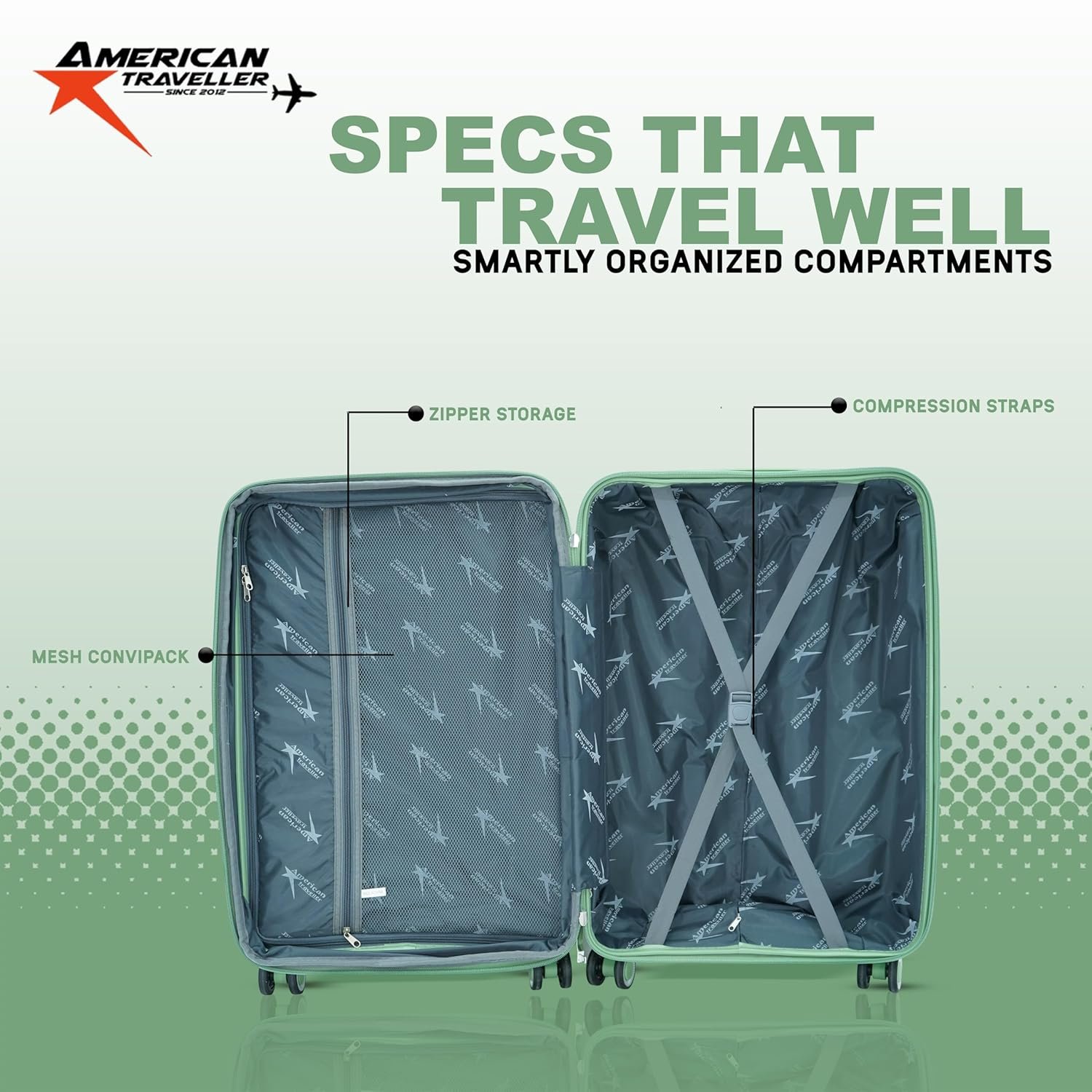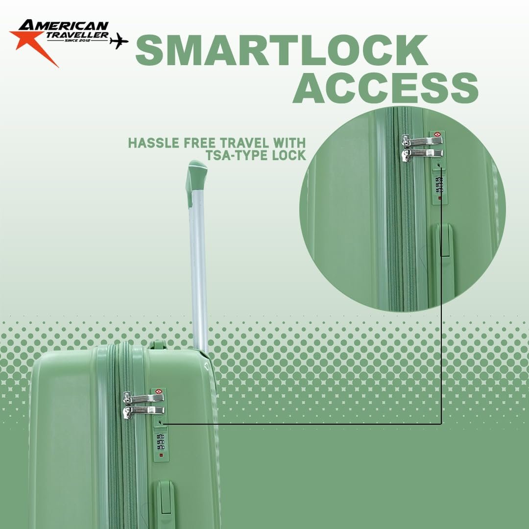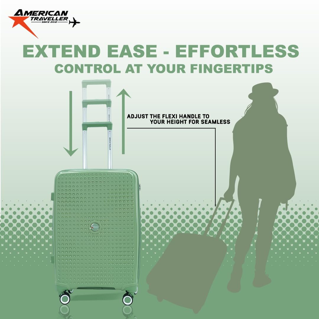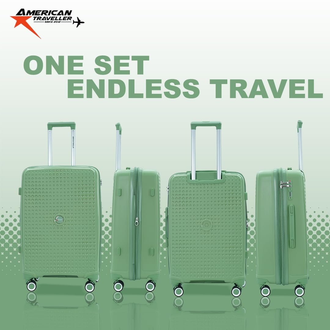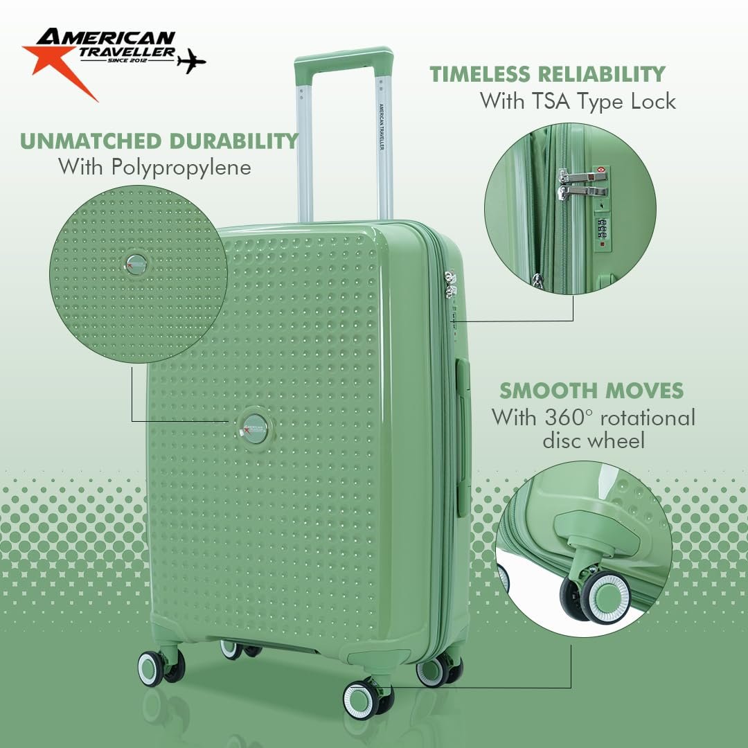 AMERICAN TRAVELLER Tourispro 2.0 Trolley Bags Lightweight Set of 3 Large and Expandable Suitcase Hardshell Polypropylene Travel Luggage Bag with TSA Type Lock & 8 Disc Wheels. (3, Mint Green)