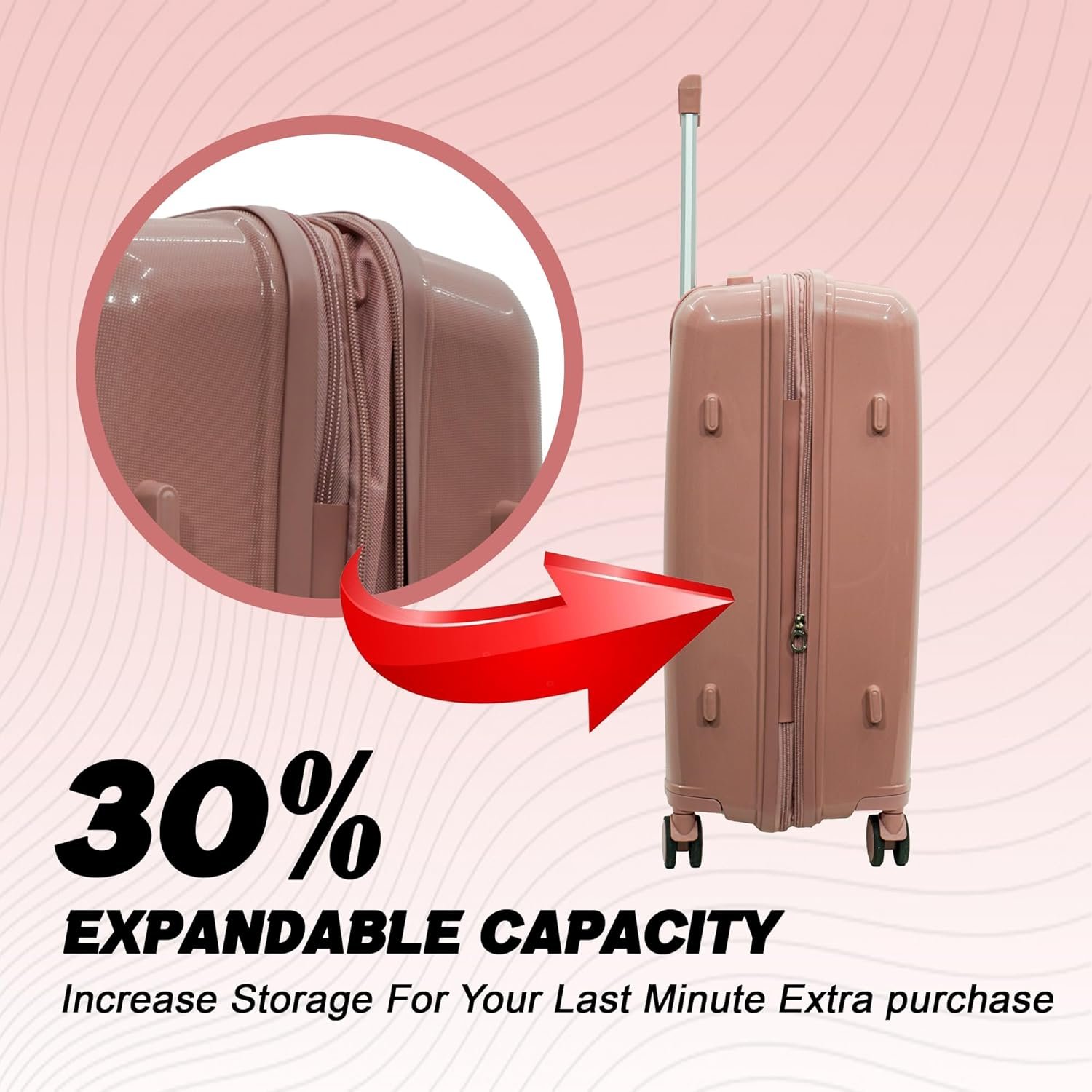 ✅ EXPANDABLE BY 30% – MORE ROOM WHEN YOU NEED IT : Simply unzip to expand your luggage and gain 30% more packing space instantly. Perfect for souvenirs, last-minute shopping, or longer trips—pack smart without carrying extra bags.