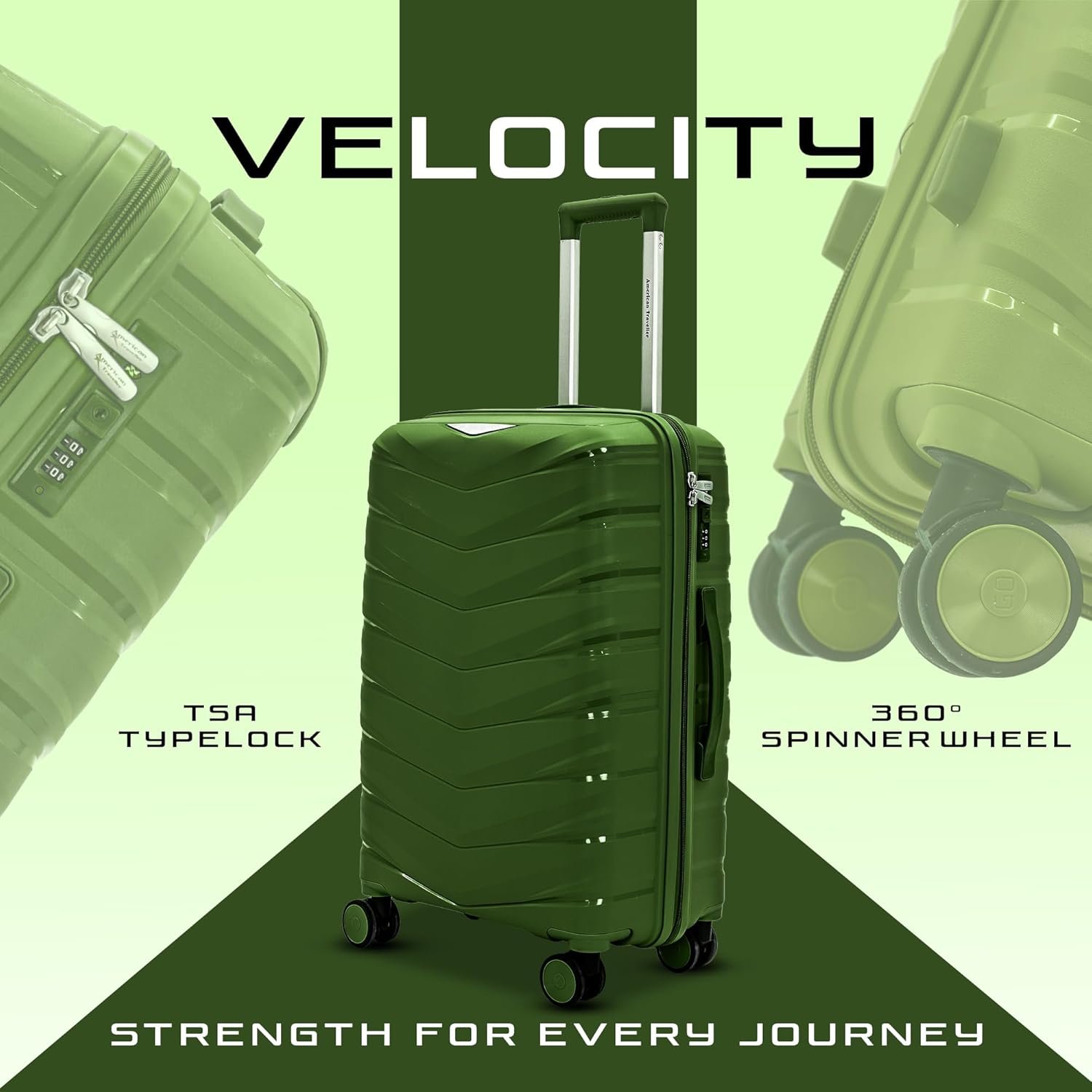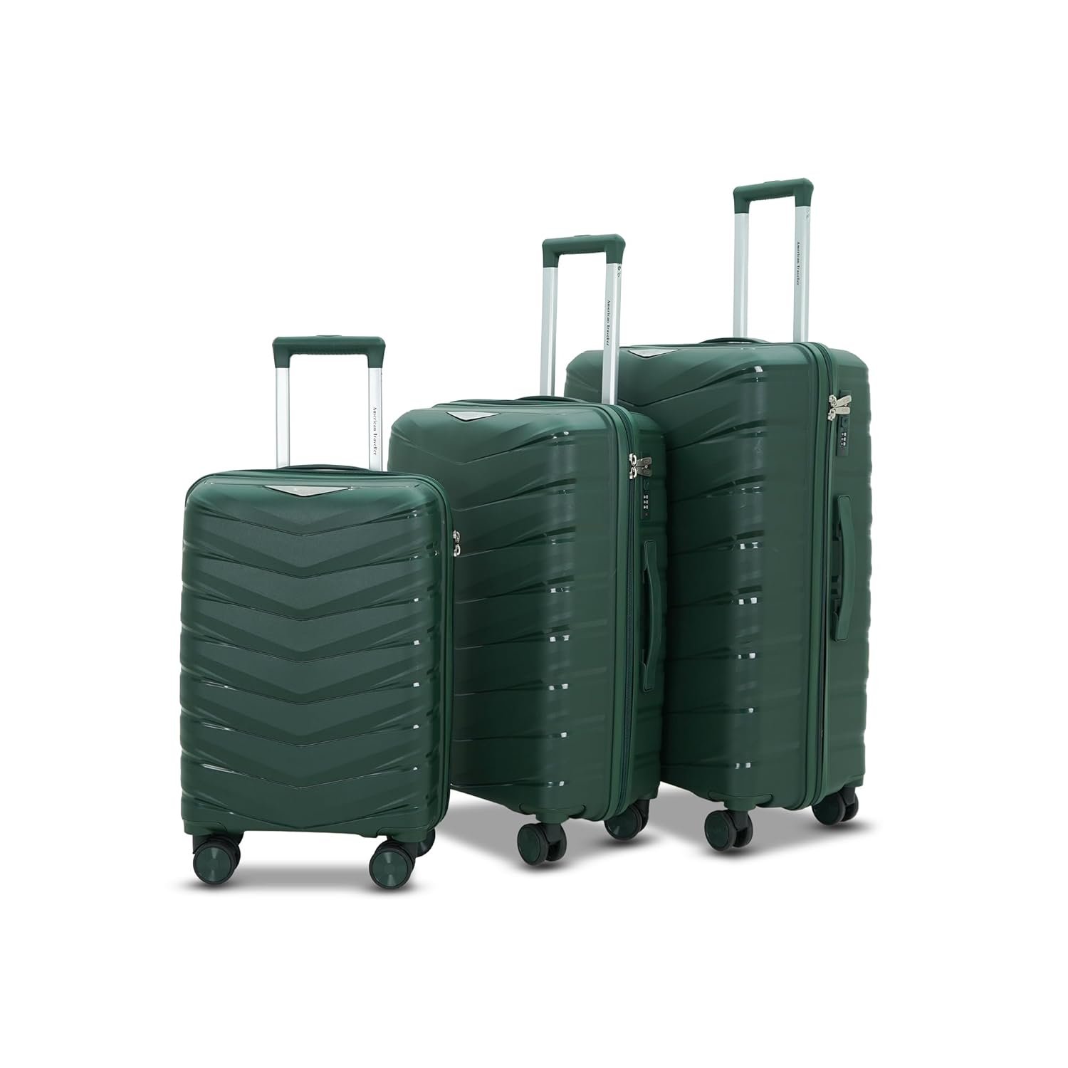 AMERICAN TRAVELLER Velocity Luggage Trolley Bags Set of 3 | Travel Suitcase | Lightweight Polypropylene| Durable Hardshell | TSA Type Lock | 360° Dual Spinner Wheels (3, Dark Green)