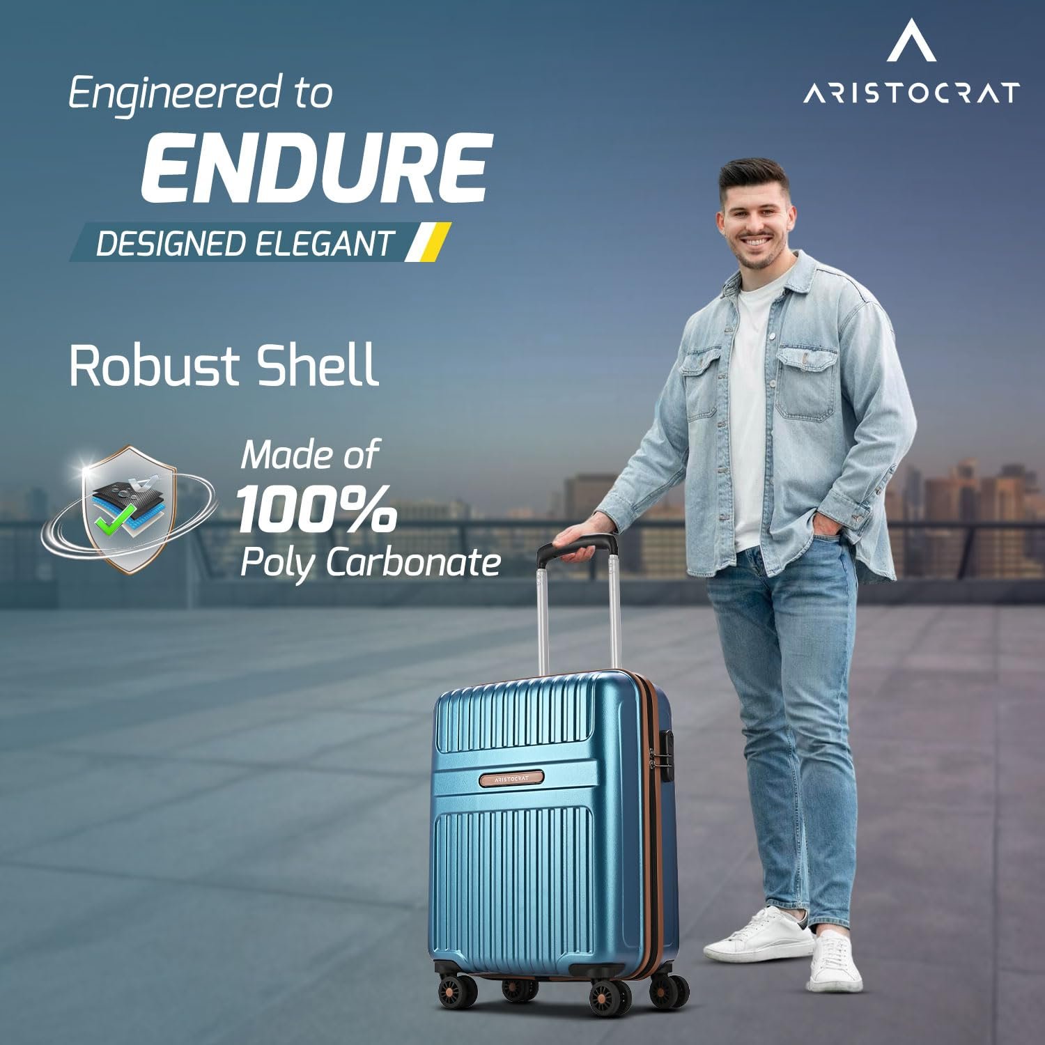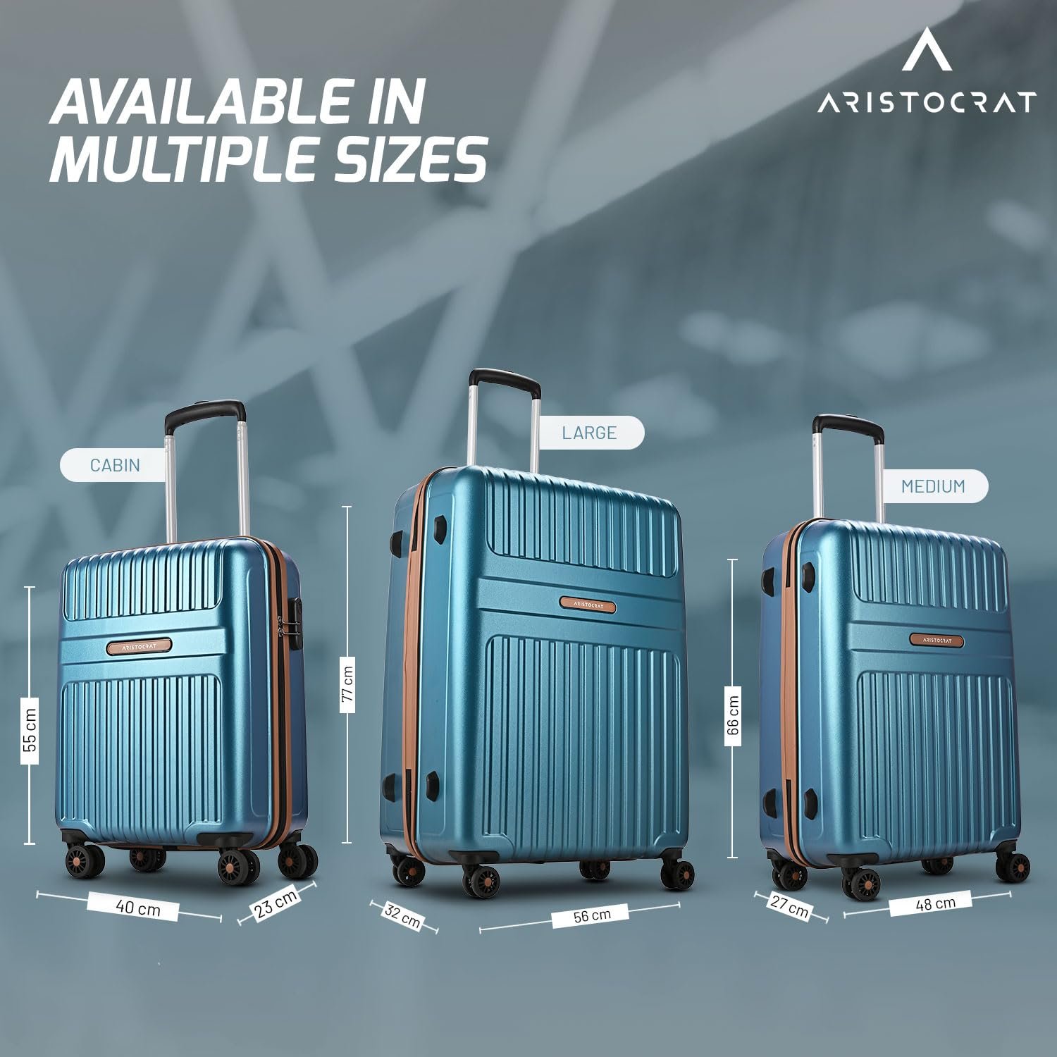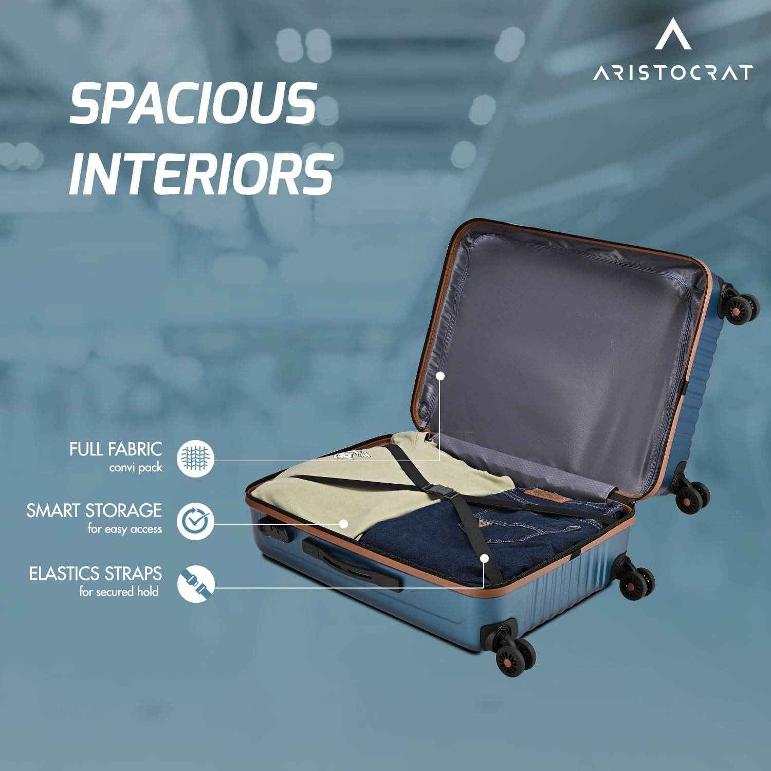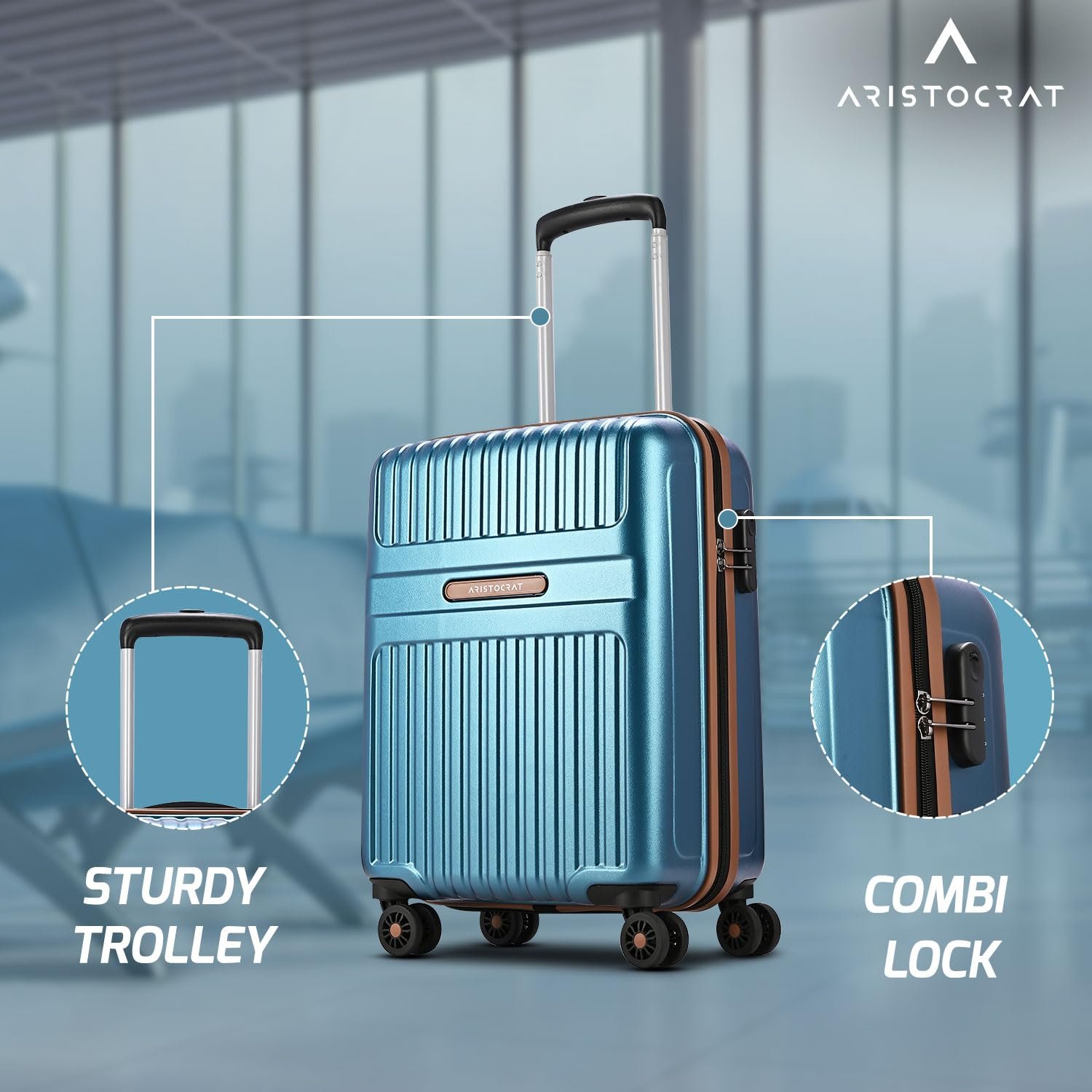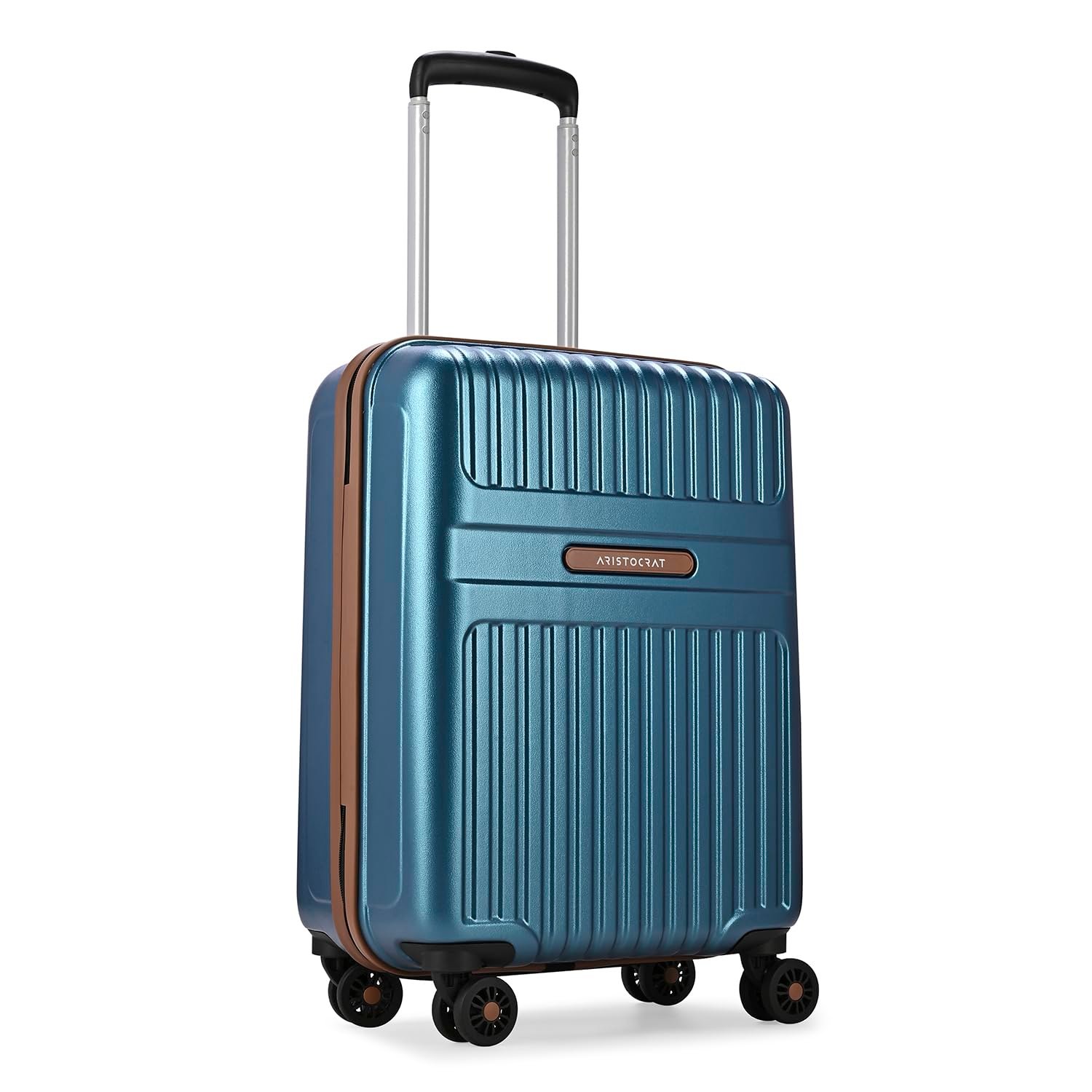 Aristocrat Atlas Cabin Trolley Bag 55cm | Small | Hard Luggage | Smooth 8-Wheel Suitcase | Secure Combination Lock with Sturdy Zipper | Full Fabric Convipack | 3-Year Warranty (Teal Blue)
