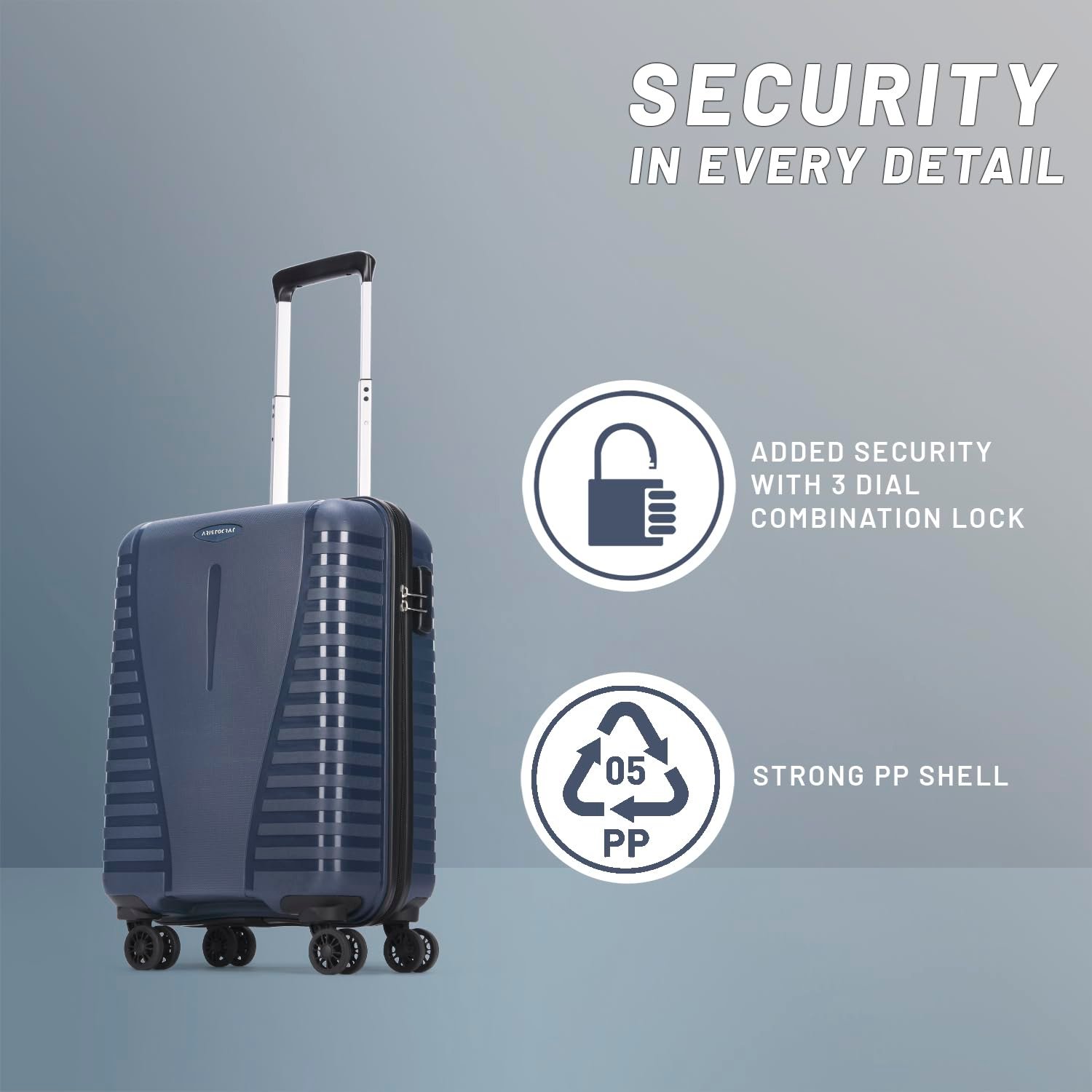 Introducing the Aristocrat Airpro, the perfect blend of durability and convenience for your travel needs. This exceptional trolley bag for travel features smooth dual wheels and a tough PP shell, ensuring effortless mobility and robust protection. Secure your belongings with the built-in combination lock and sturdy zipper, and travel with confidence thanks to a 7-year warranty. Whether you need a reliable suitcase for travel, luggage bag for travel, or travel bag, the Aristocrat Airpro adapts to all situations, from cabin trolley bags and small trolley bags for travel to mini trolley bags for travel. Its versatile design encompasses the benefits of hard case trolley bags and polypropylene trolley bags, making it the ideal cabin baggage or 8 wheel trolley bag for luggage on any journey.