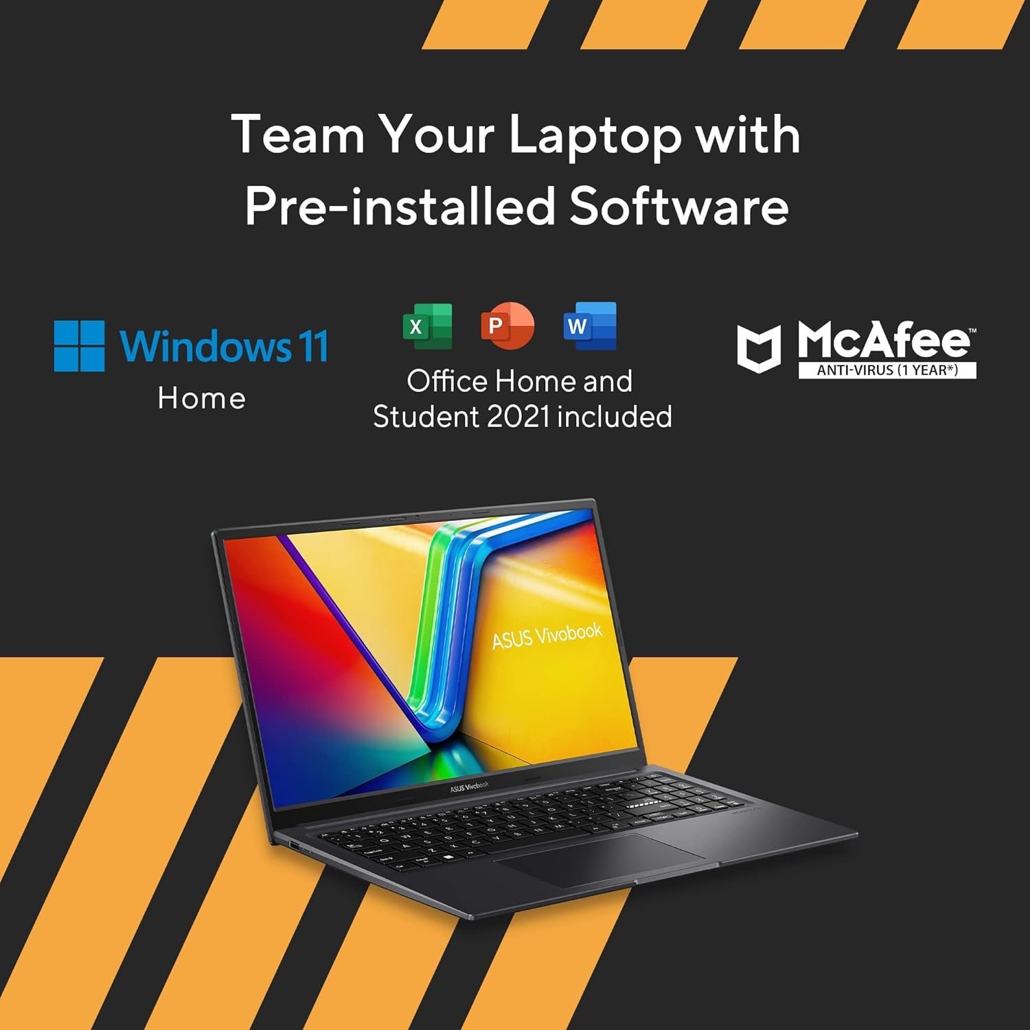 Operating System: Windows 11 Home with lifetime validity | Software Included: Pre-Installed Office Home and Student 2021 | 1-Year McAfee Anti-Virus