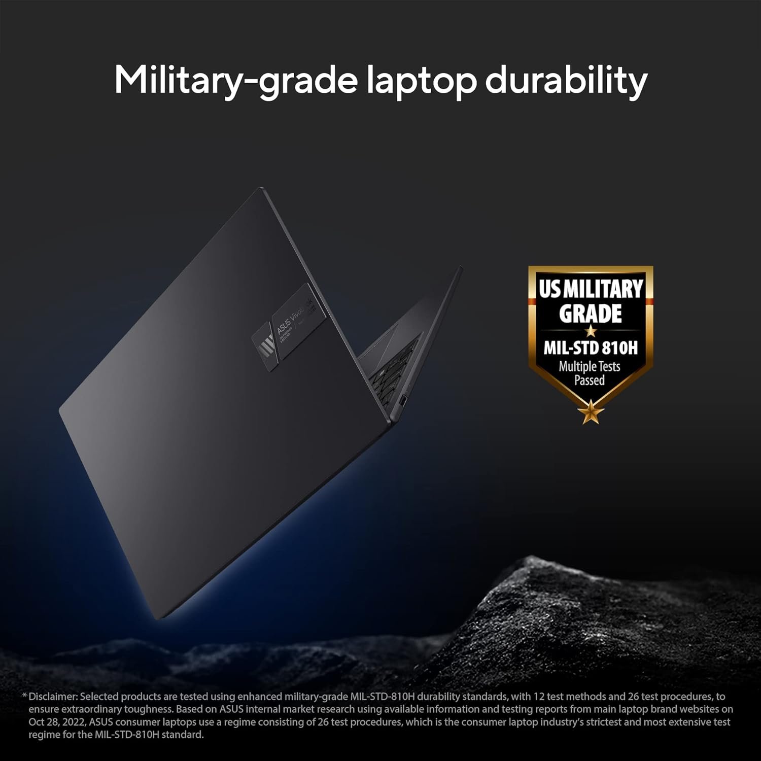 ASUS laptops are engineered with extraordinary toughness meet the exacting MIL-STD-810H military-grade standard