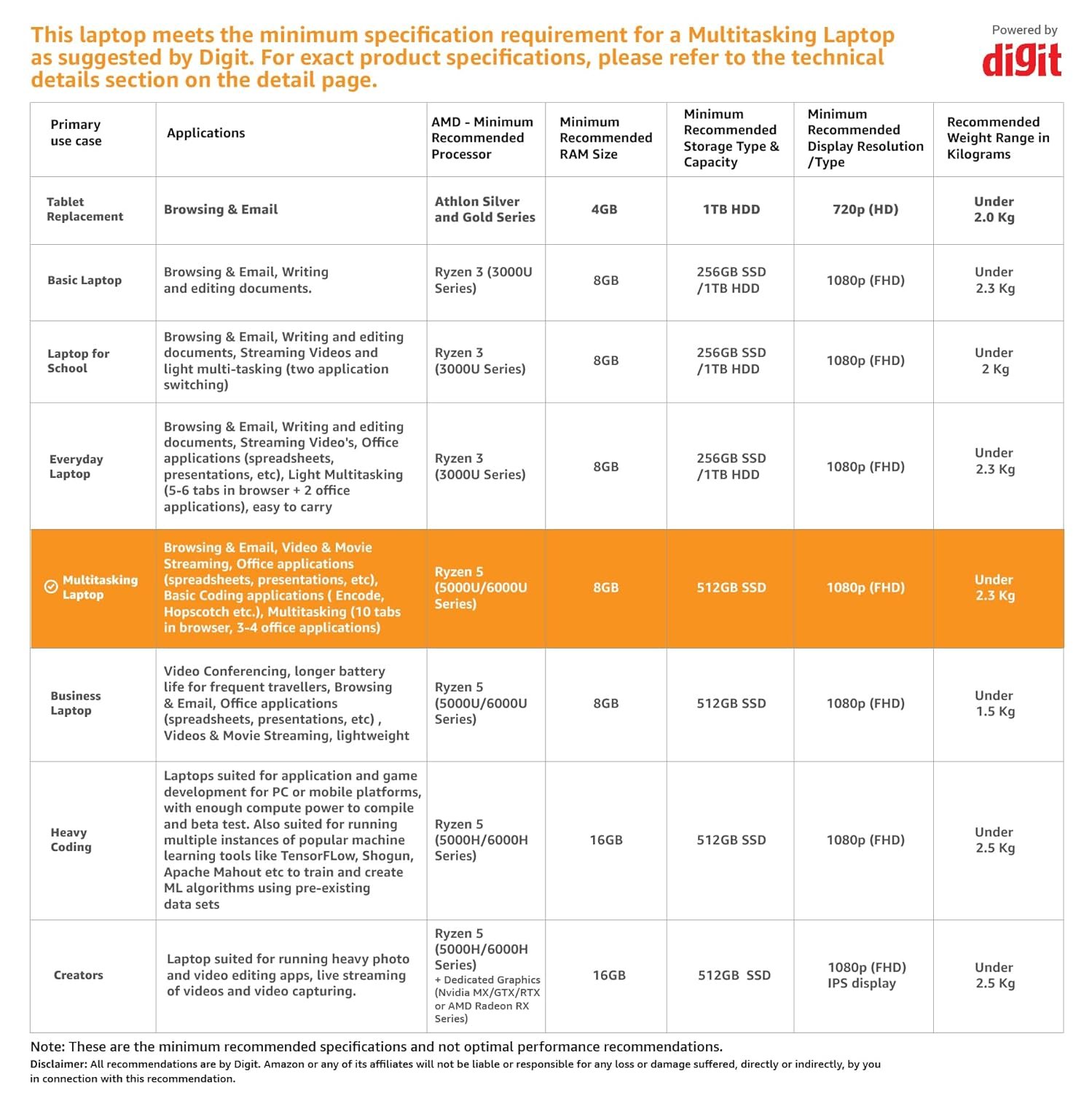 Processor: AMD Ryzen 5 7520U Mobile Processor (4-core/8-thread, 4MB cache, up to 4.3 GHz max boost)