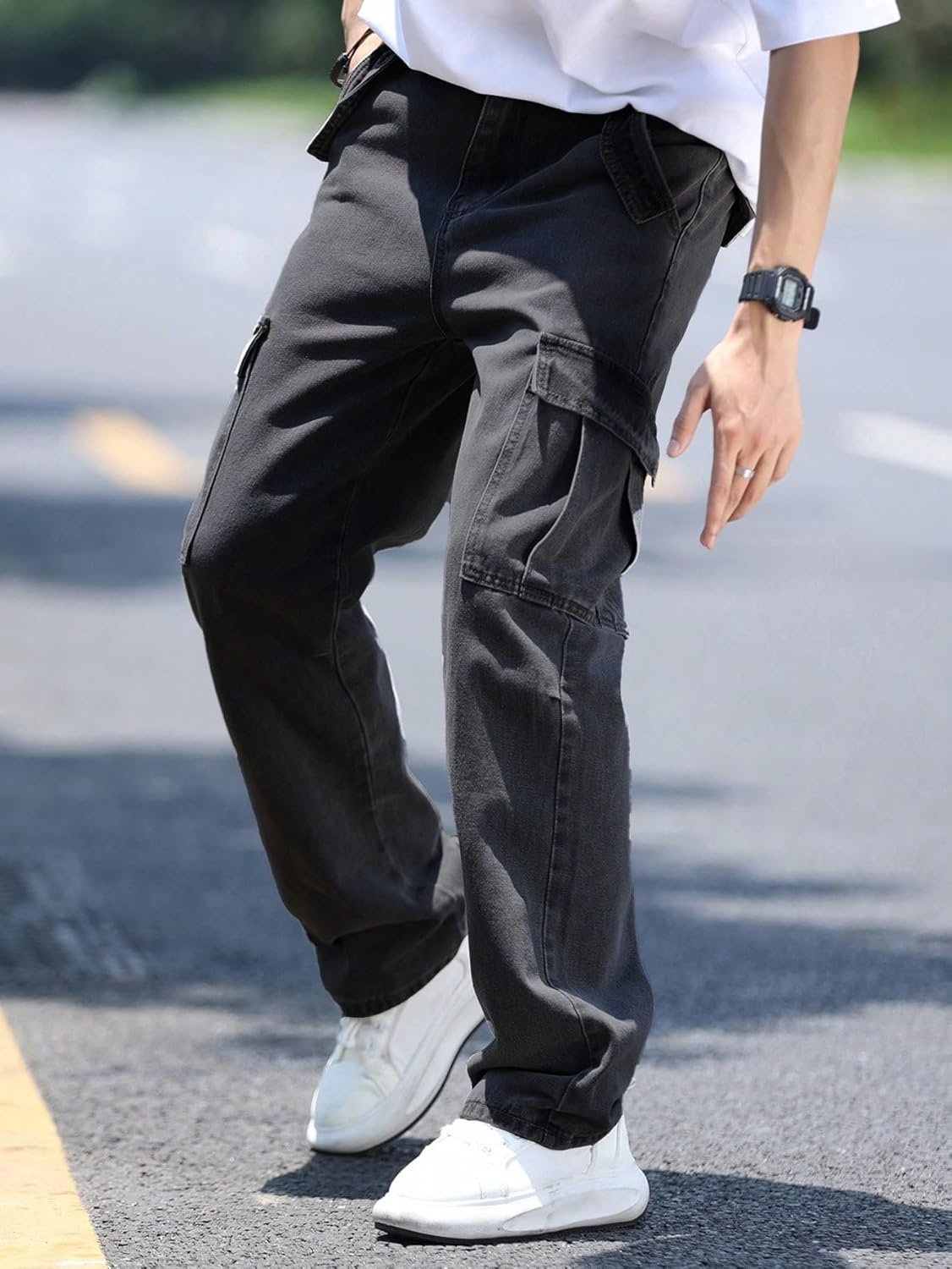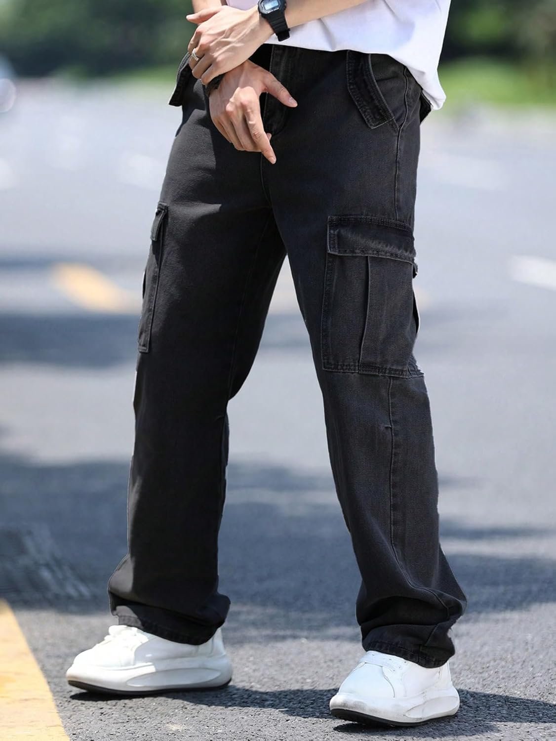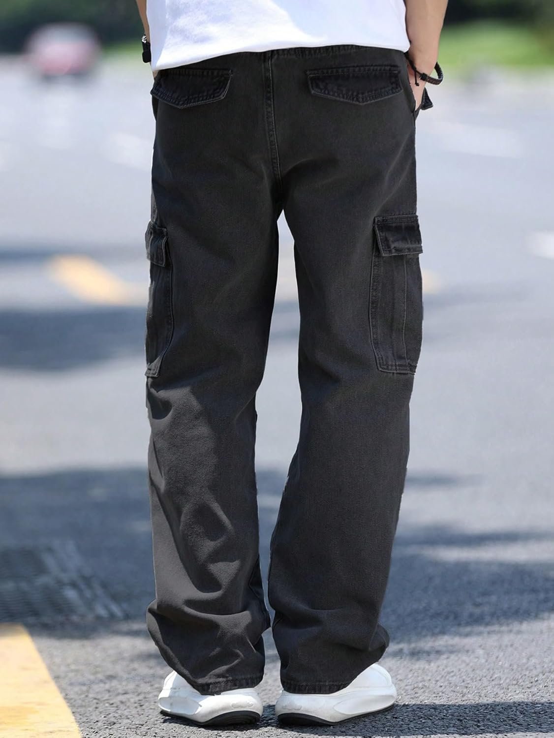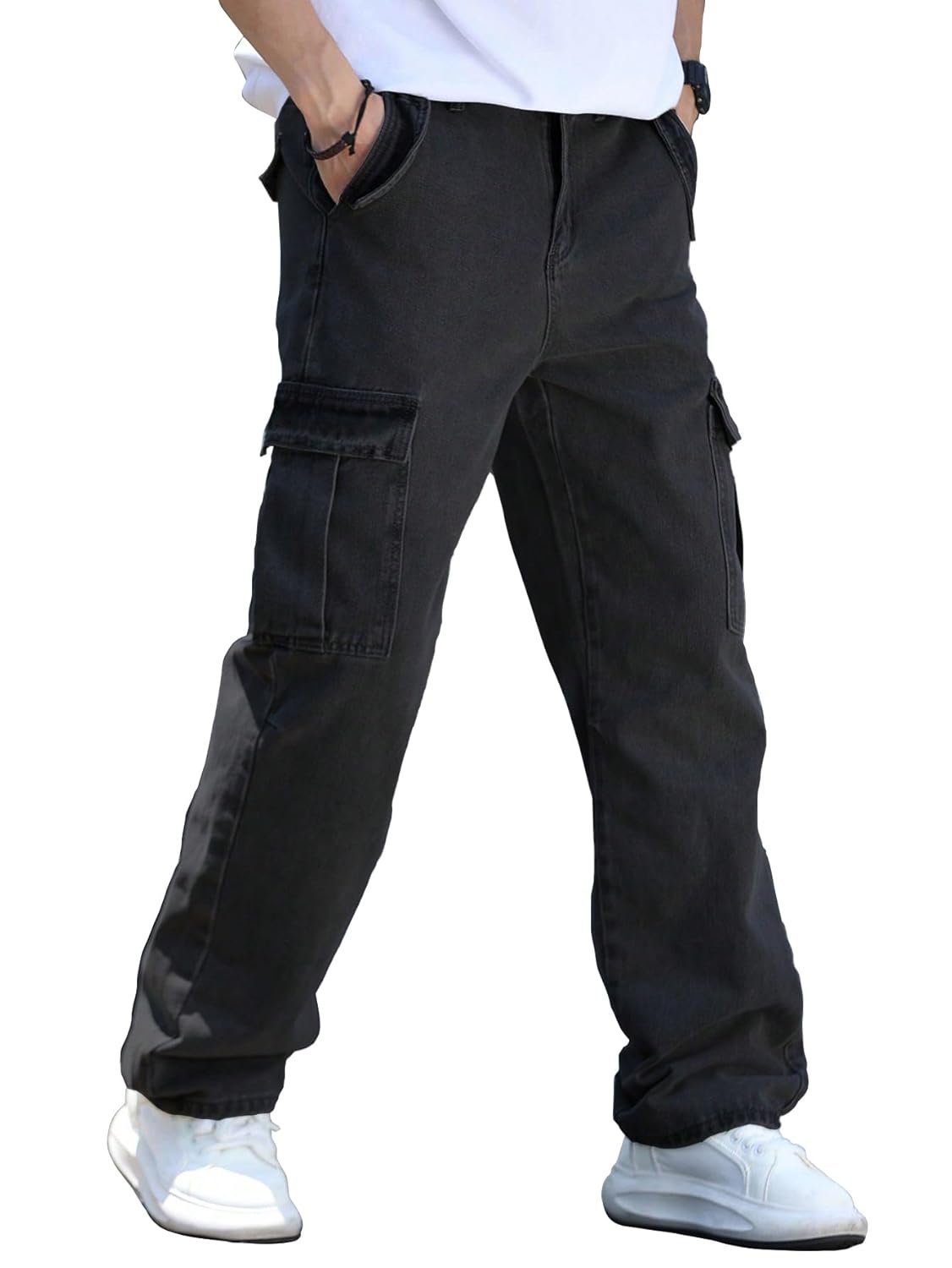 Generic Name : AVANOVA Men’s Cargo Jeans Pants, Black Slim Fit, Multi-Pocket Design, Casual Denim Trousers