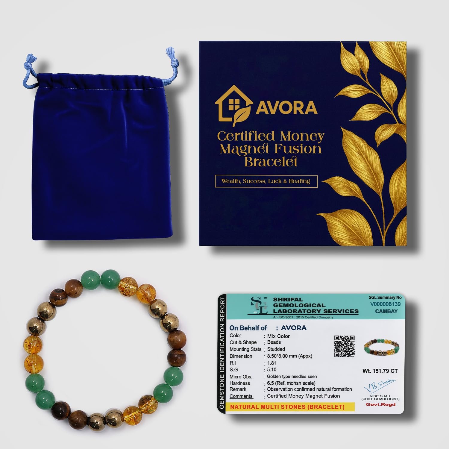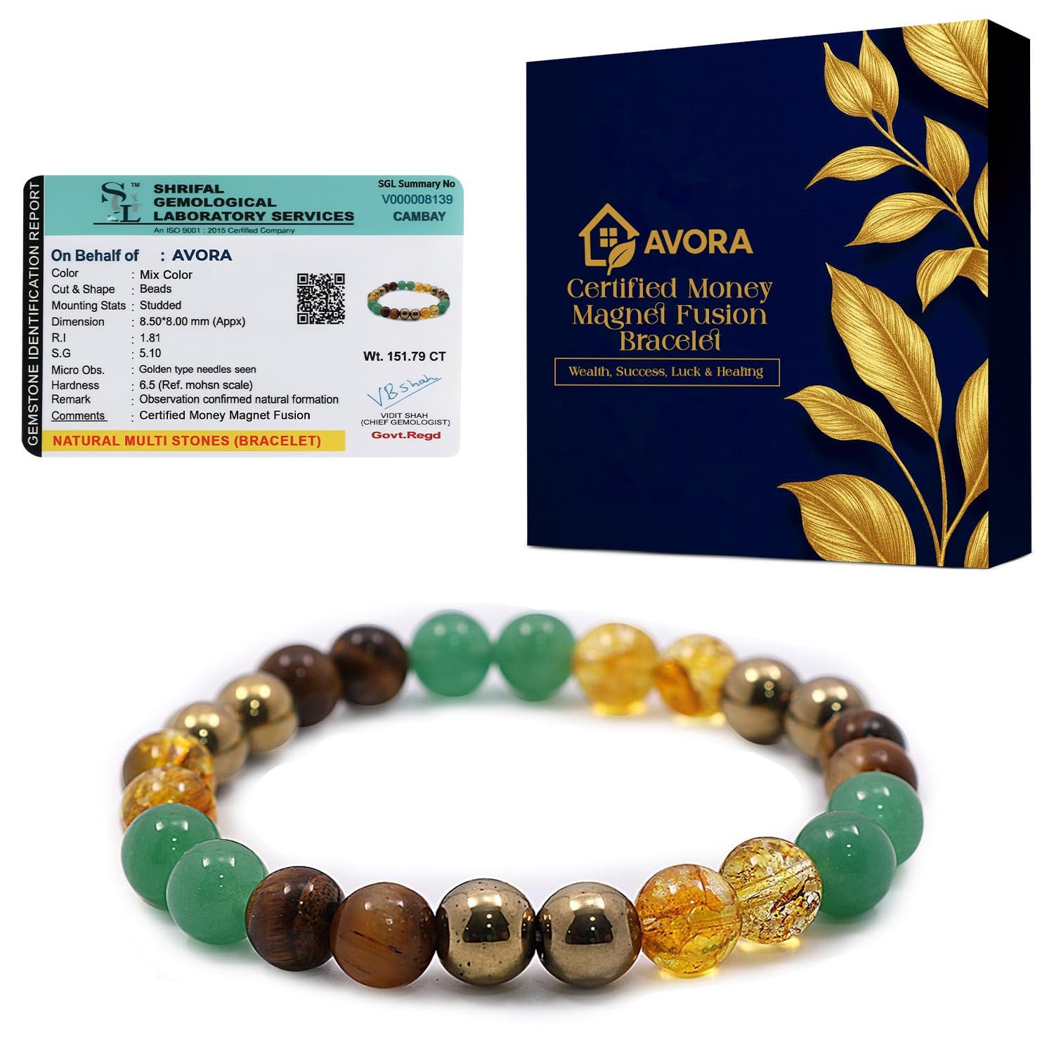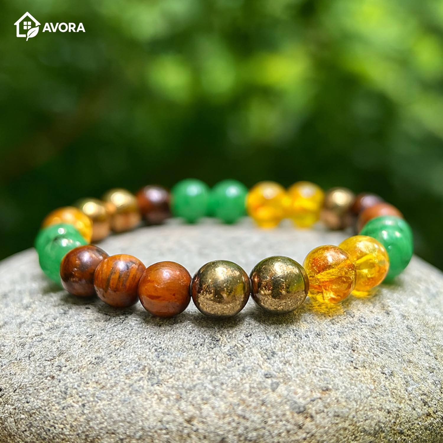 AVORA Money Magnet Fusion Bracelet for Men & Women | Natural Pyrite, Tiger Eye, Citrine & Aventurine Crystal Beads | Certified Healing Gemstone for Wealth, Success, Luck & Positive Energy