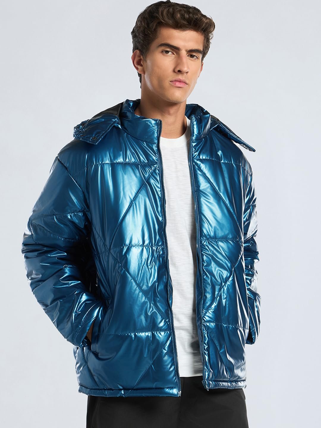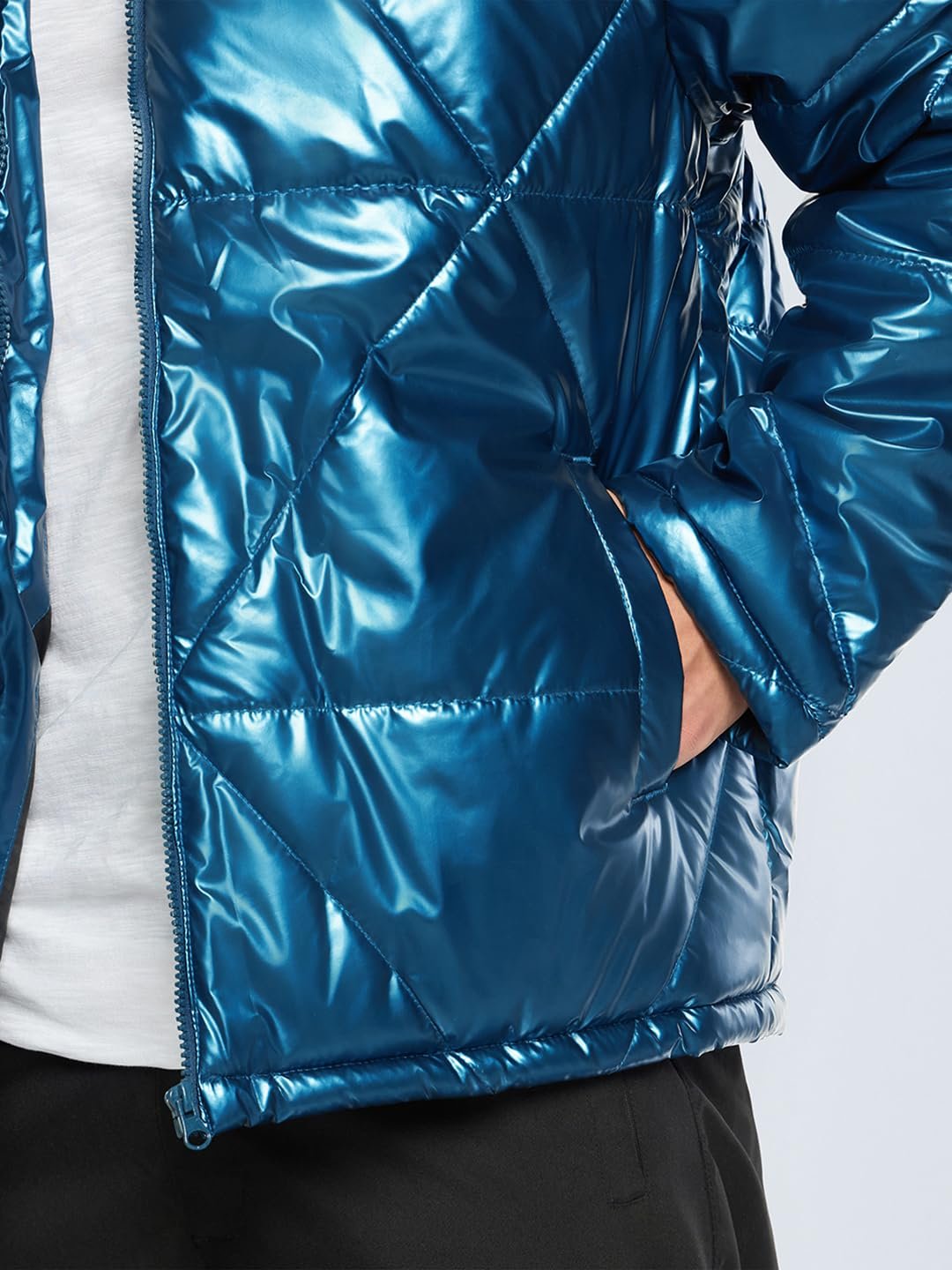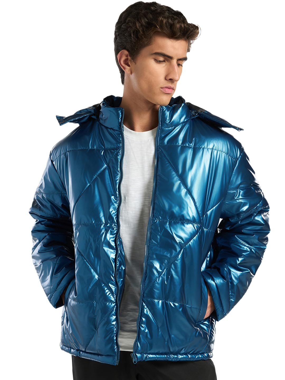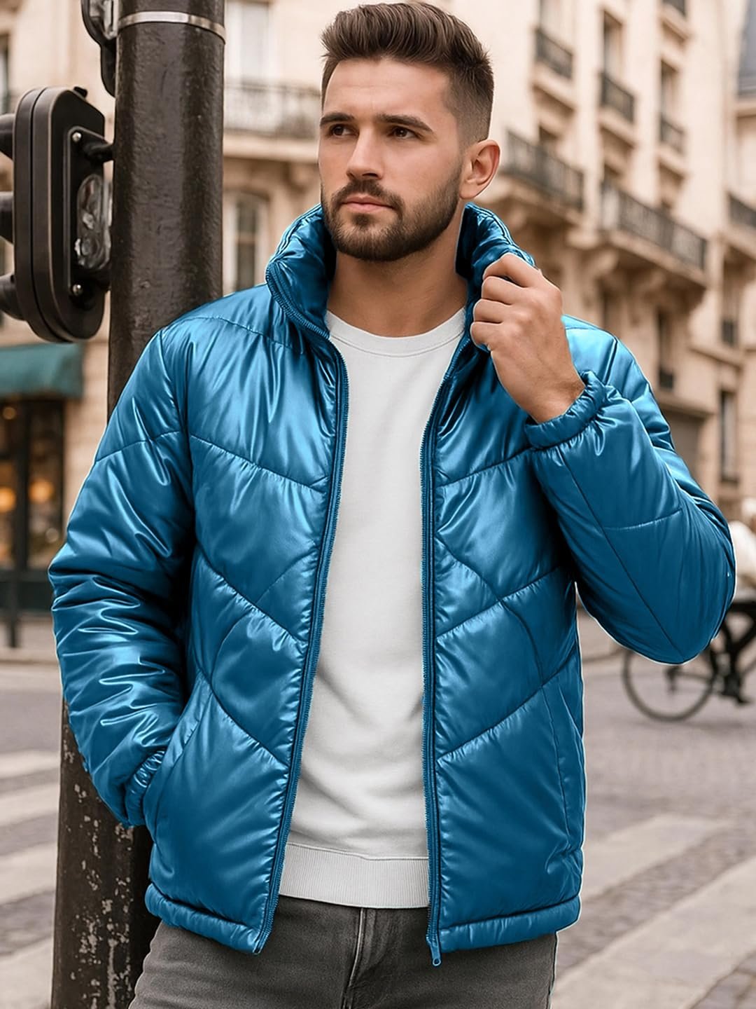 Conquer the cold in style with Men’s Teal Blue Oversized Puffer Jacket. Pair it with neutral joggers and chunky boots, or go all out with contrasting colors. Frosty weather? Bring it on.