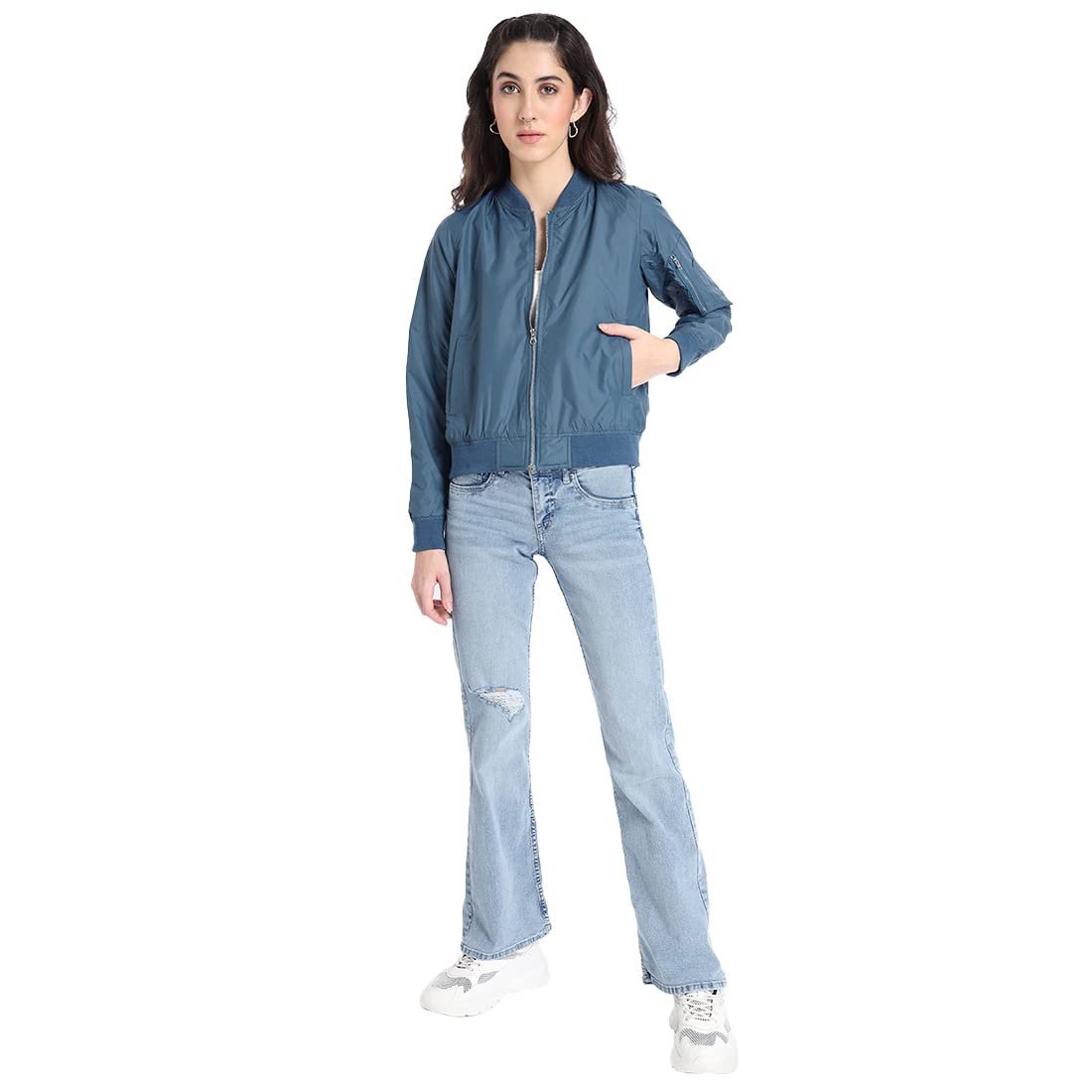 Bewakoof Women’s Solid Regular Fit Full Sleeve Stand Collar Nylon Jacket