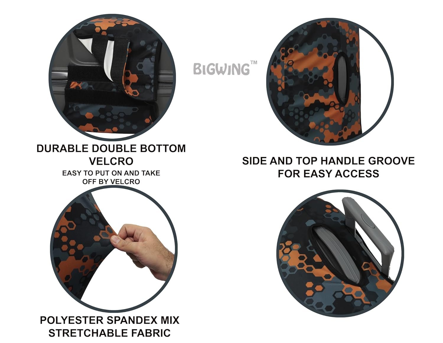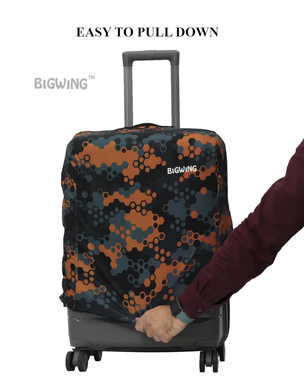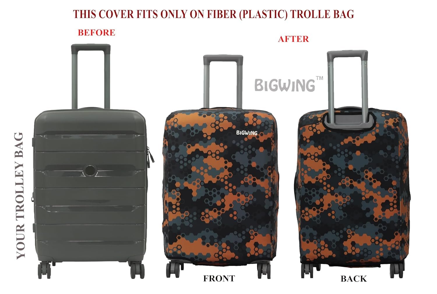 BIGWING Protective Cover in Polyester Fabric with Honeycomb Print for | 24′ Inch 65 cm Medium Size | Hard Luggage Trolley Bag Cover (Fits Only On Fiber – Plastic Trolley Bag)