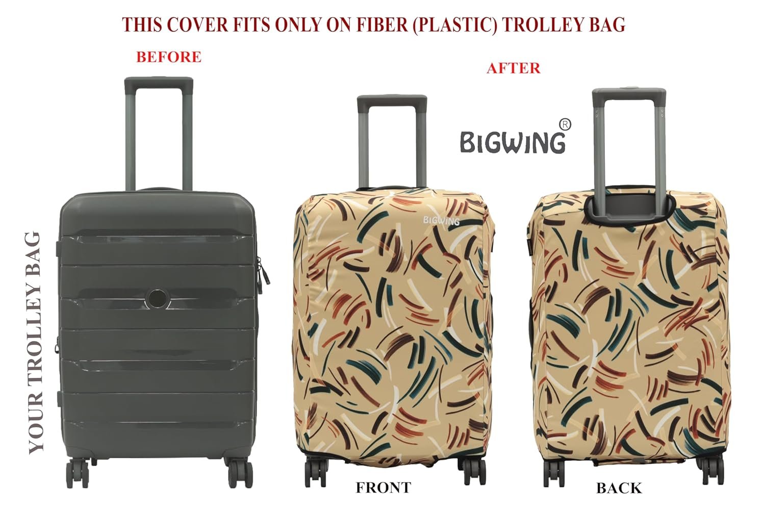 BIGWING Protective Cover in Polyester Fabric with Strips Print for | 65 cm 24 inch Medium Size | Hard Luggage Trolley Bag Cover (Fits Only On Fiber – Plastic Trolley Bag)