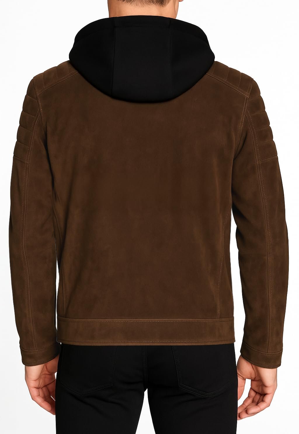 Blaq Ash Men’s Suede Removable Hood Jacket, Quilted Sleeves