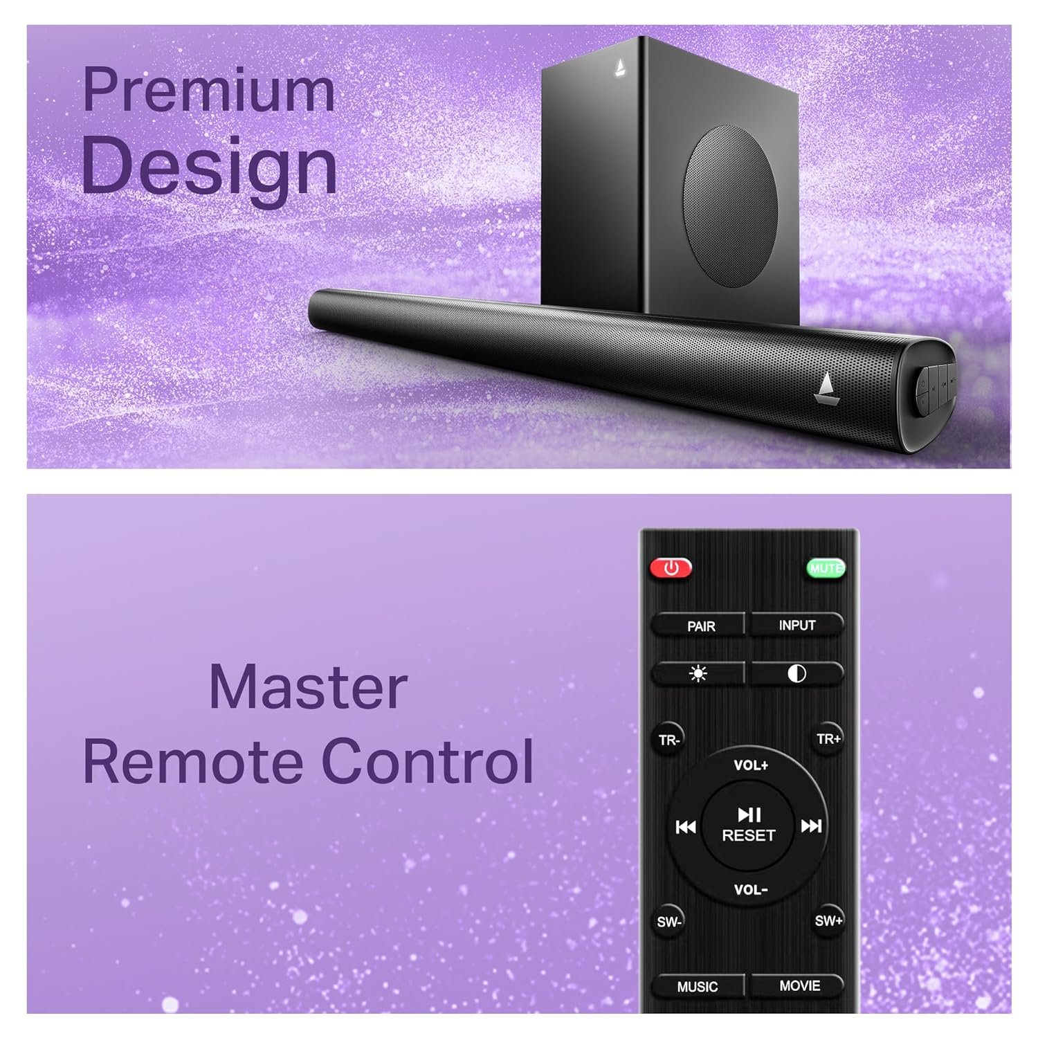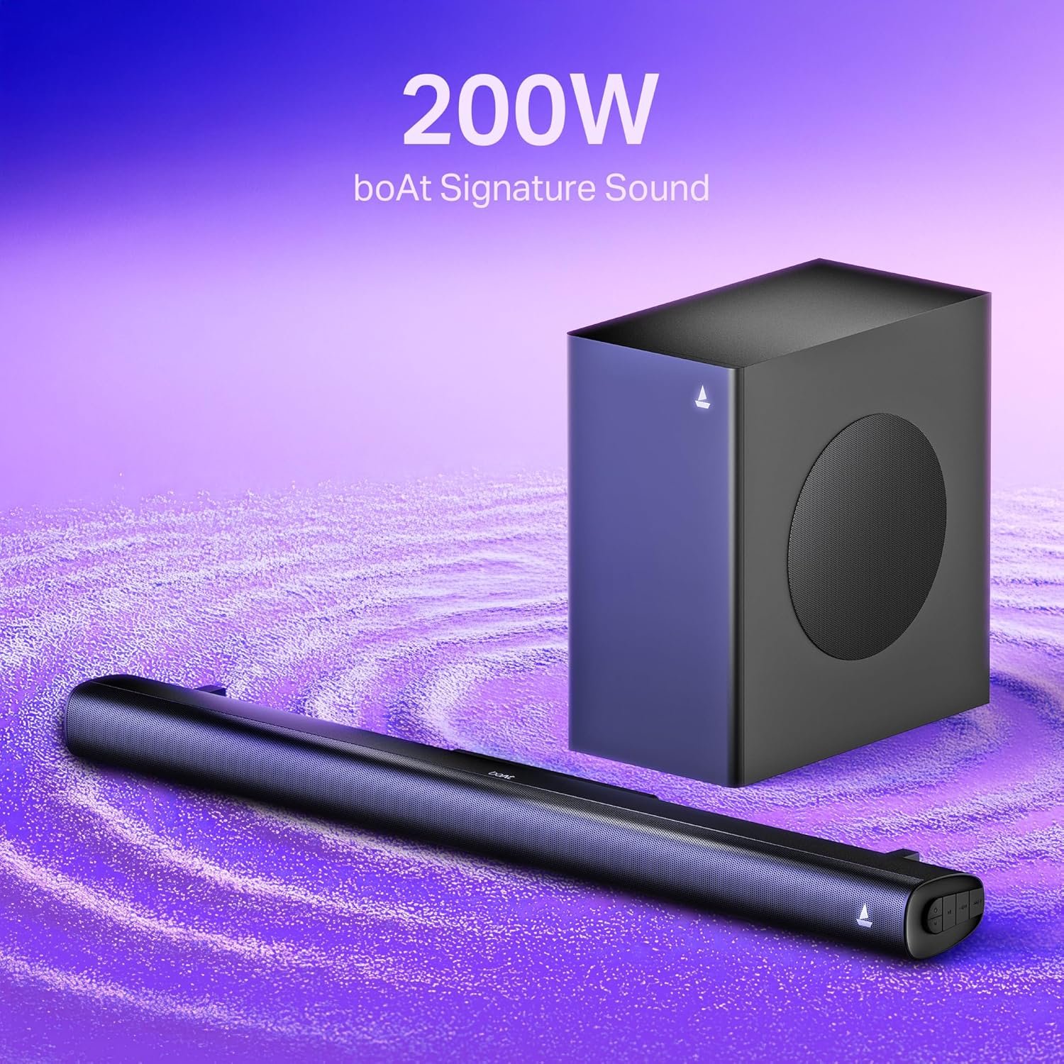 boAt Aavante 2.1 2000, 200W, EQ Modes, Multi Compatibility, Premium Design, Remote Control, v5.4 Bluetooth Sound bar, Home Theatre Soundbar Speaker(Premium Black)