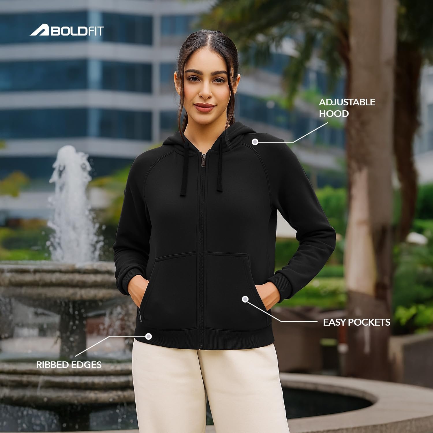Boldfit Hoodies for Women Hooded Sweater for Woman Comfortable Sweatshirt for Woman Zipper Hooded Jacket for Women Casual wear Hoodie Full Zipper Hoodies for Girls