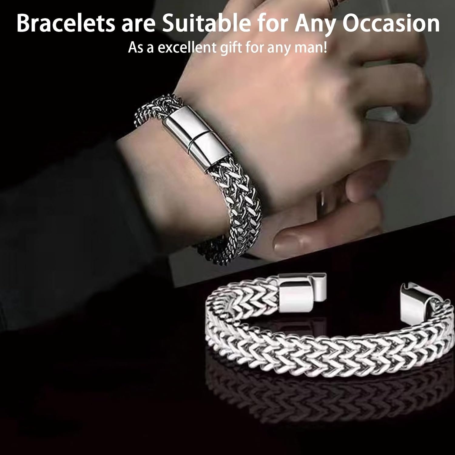 Bracelet for Man, Mens Accessories Stylish Hand Accessories,Suitable for Both Men and Boys, Fashion Gift for Birthday and Anniversary,Stainless Steel White Bracelet